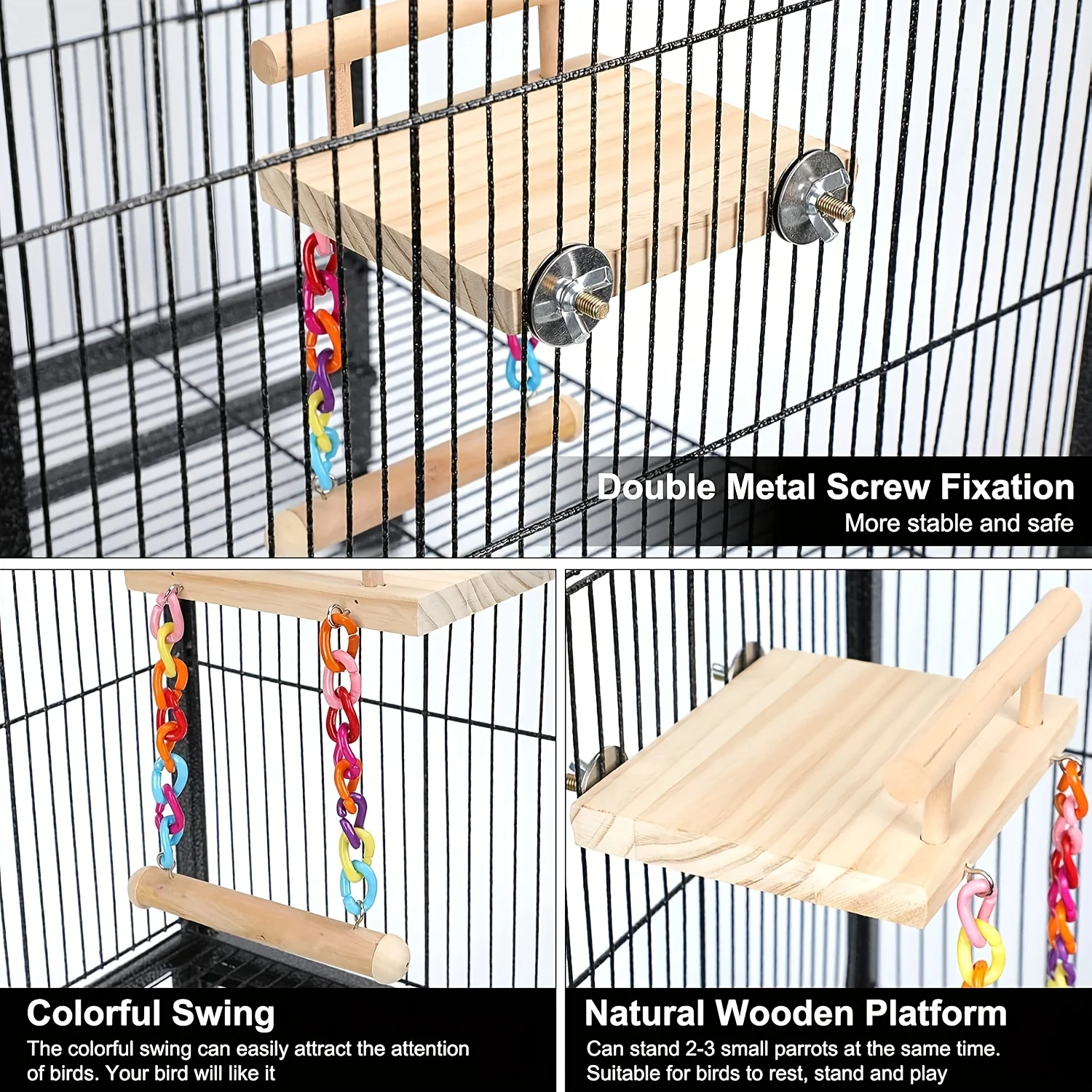 Plataforma de madera para columpio y escalera de escalada con puente de cuerda, habitat natural para pájaros, equipamientos deportivos y de juego, jaula para pájaros
