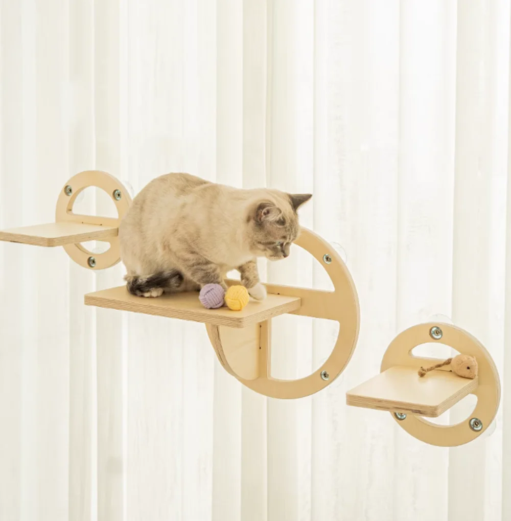 Juego de muebles de pared para gatos, poste para rascar y escalar, hamaca, cama, estantes de madera para escaleras, casa interior para gatitos, 1 ud.