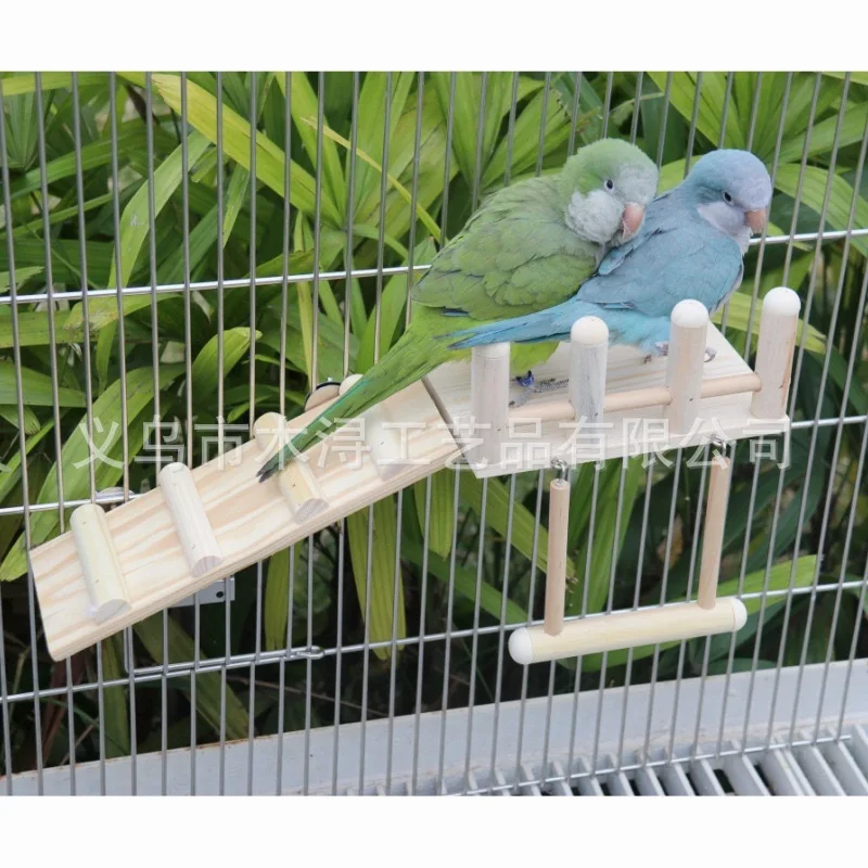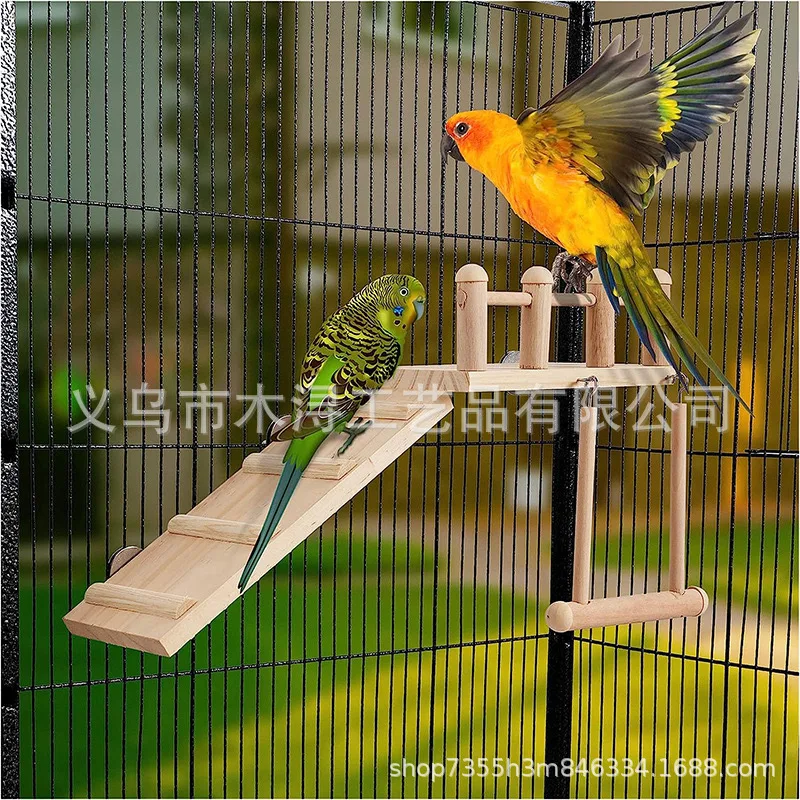 Plataforma de torrado de pájaros de madera, escalera de escalada para loros, columpio, hamaca, trampolín, loro, juego de juguetes de tres piezas para otoño