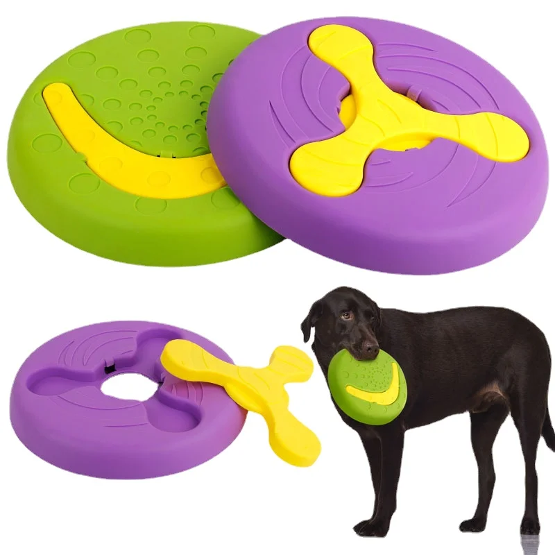 Platillo volador de doble propósito para perros y gatos, juego de discos voladores resistentes para masticar, suministros interactivos de entrenamiento para perros, accesorios