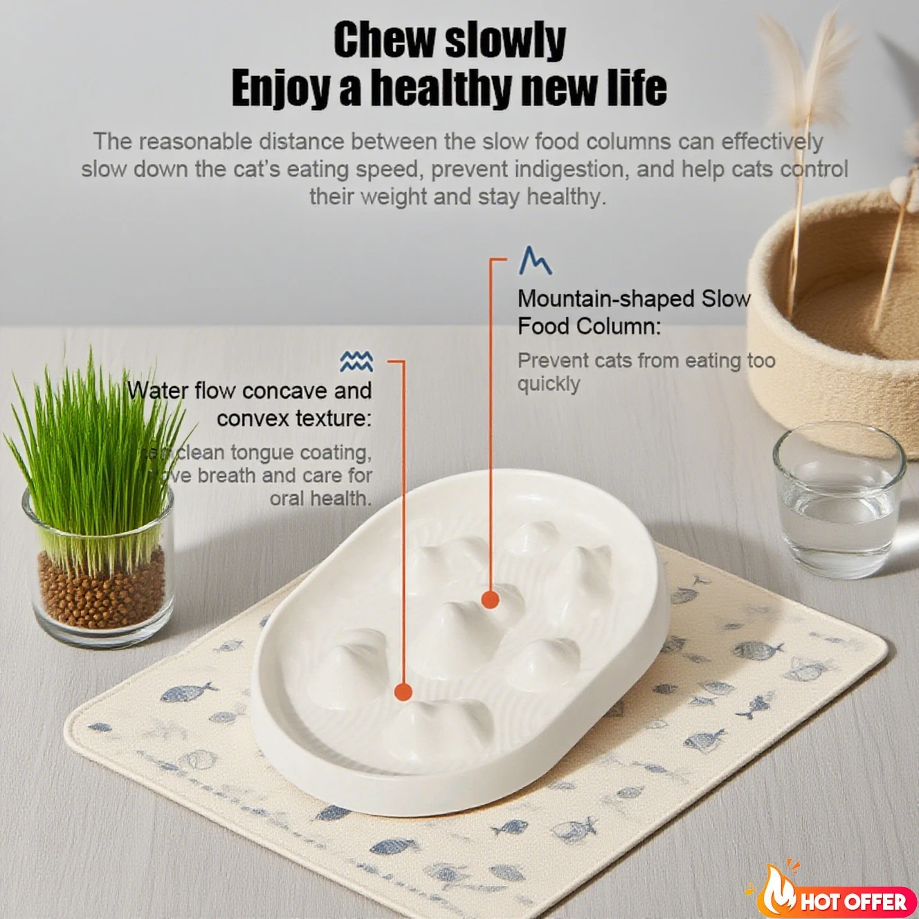 Plato para gatos, dispositivo lento puro para gatos, accesorios de comida para mascotas, Color Simple, antiasfixia, comida para mascotas, cuenco de suministros lentos para perros