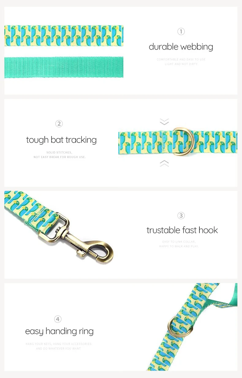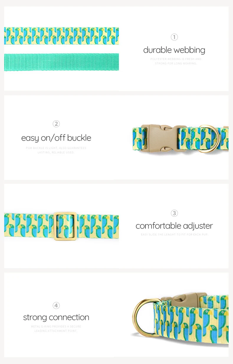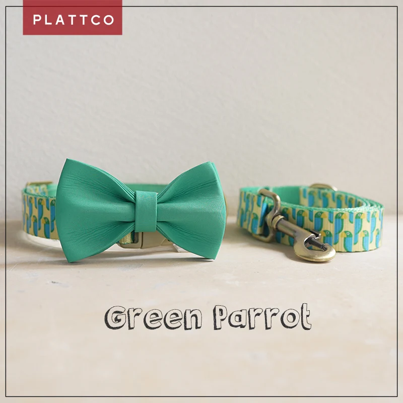 PLATTCO Bonito collar de mascota verde, accesorio ajustable para perro, suministros para mascotas, collar de correa para perro, juego para perro pequeño, mediano y grande, loro verde PDC360