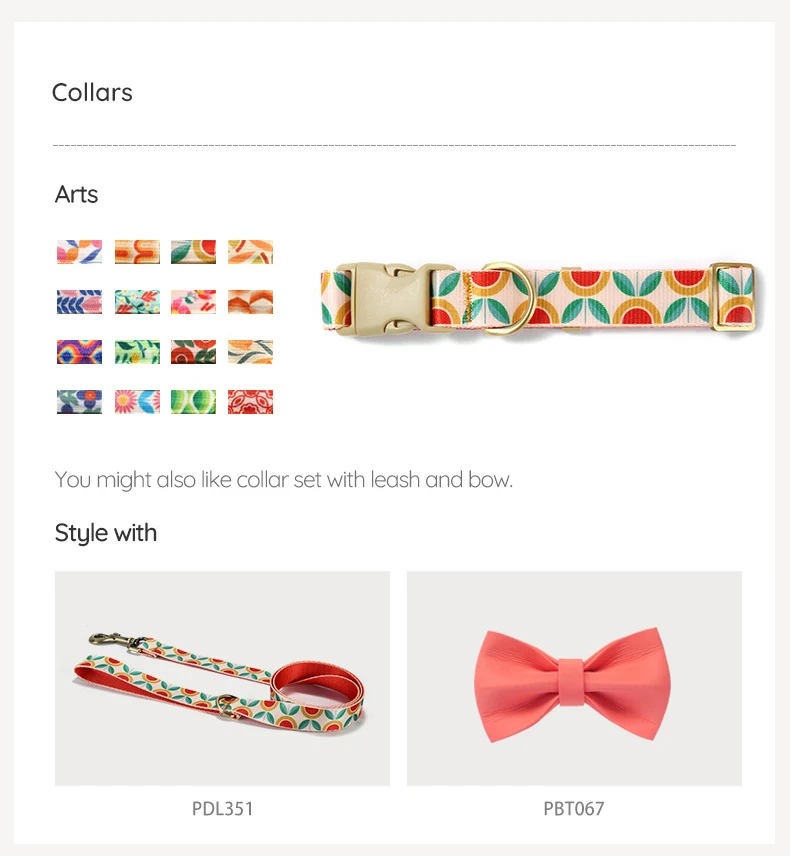 PLATTCO Correa para perro impresa de nailon, Collar ajustable para perros, productos para mascotas, placa de identificación grabada personalizada, suministros para mascotas, té de flores PDC351