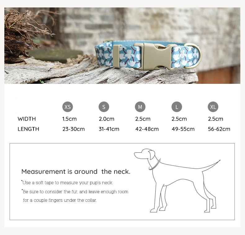 PLATTCO Collar de Perro Ajustable con Nombre Personalizado Grabado de Nailon para Perros Pequeños, Medianos y Grandes, Gardenia Fría, 5 Tamaños, PDC345