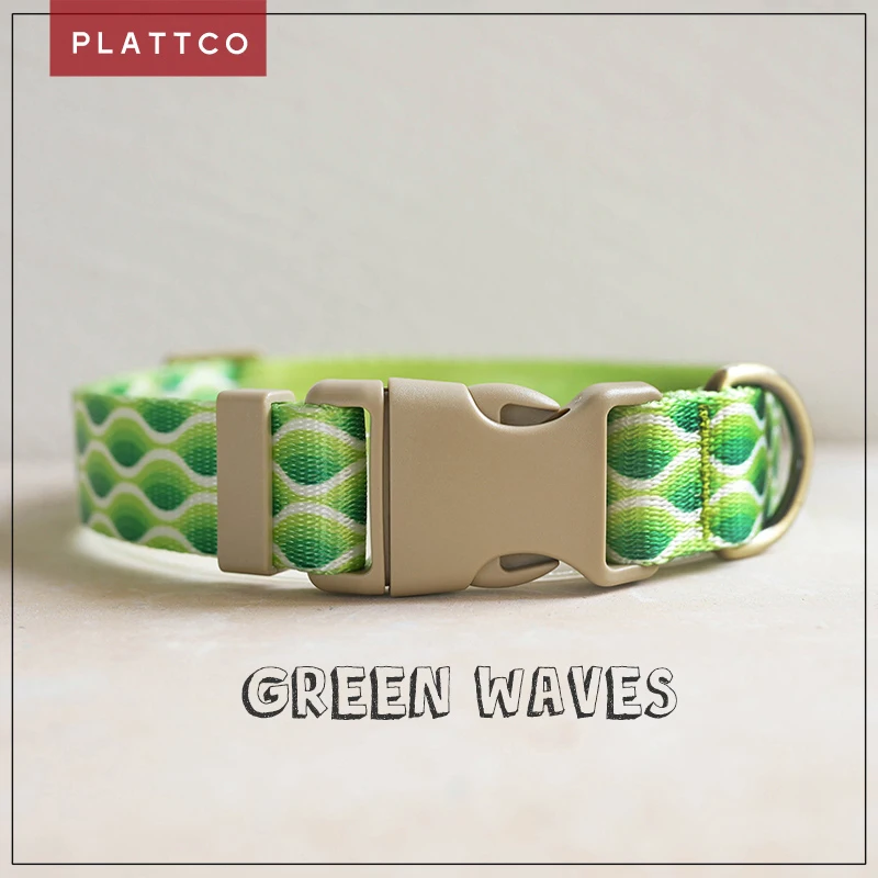 PLATTCO-Collar de diseño personalizado para mascotas, Gargantilla hecha a mano con ondas verdes, 5 tamaños, para perro auto perdido, PDC363