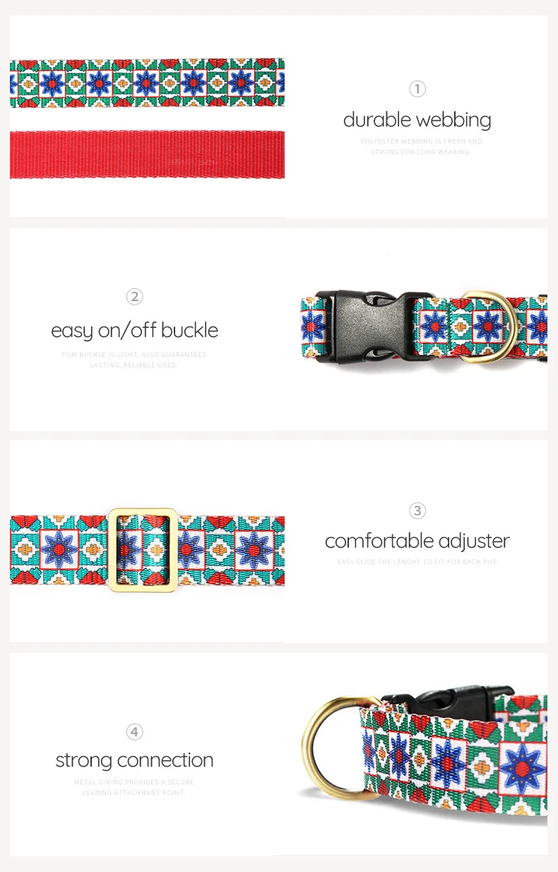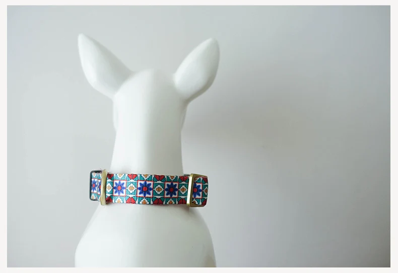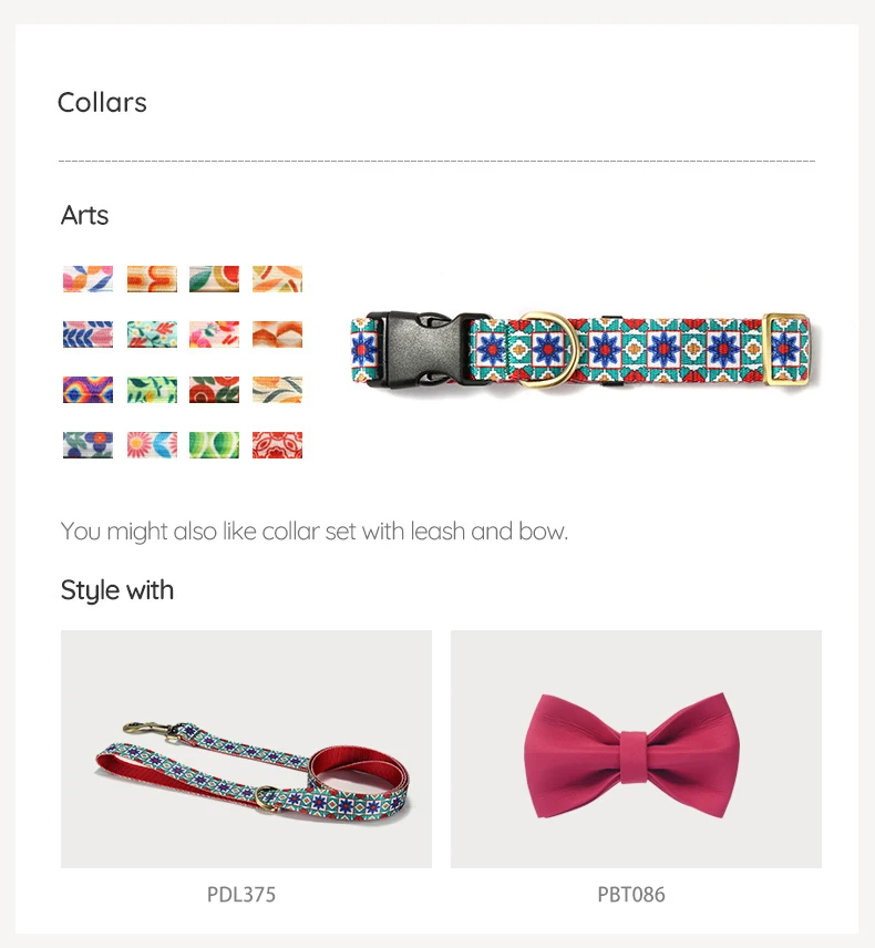 PLATTCO Venta al por menor de alta calidad Collar hecho a mano con pajarita Azul Caleidoscopio Collar de perro Correa Set 5 Tamaños PDC375