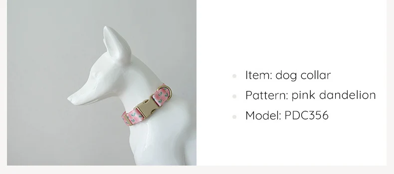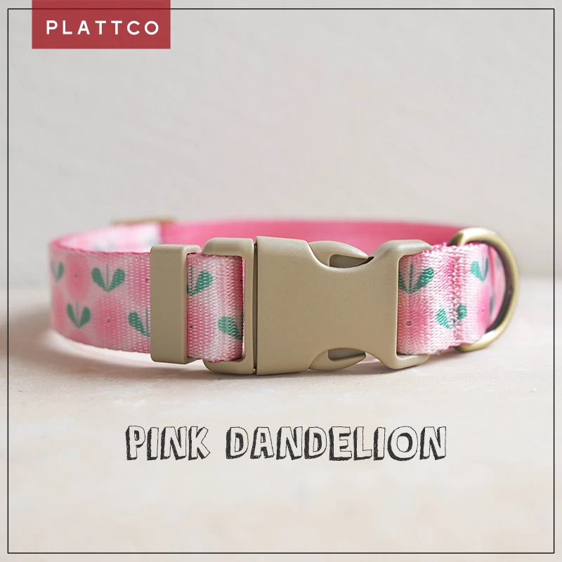 Collar de perro personalizado de diseñador PLATTCO, Collar de perro personalizado de nailon de lujo para perros pequeños y grandes, collares con nombre, diente de león Rosa PDC356