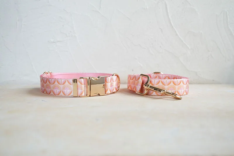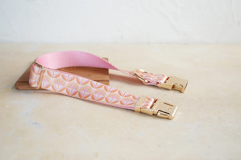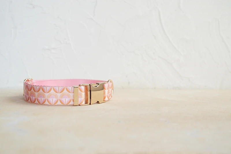 Collar de perro de diseño único PLATTCO con estampado de flores de amanecer con hebilla de aleación de zinc de color claro de alta calidad 5 tamaños PDC350G