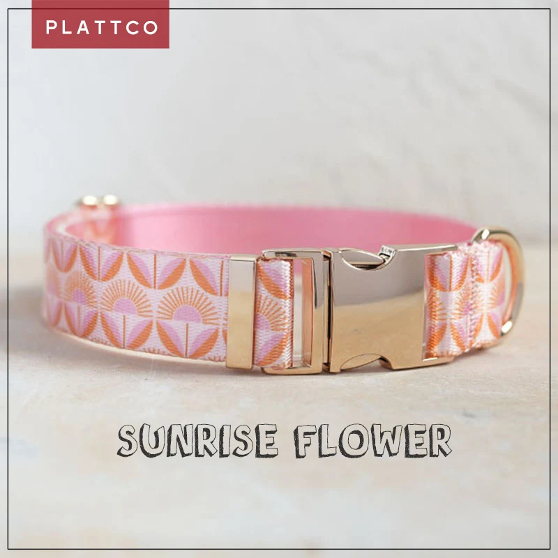 Collar de perro de diseño único PLATTCO con estampado de flores de amanecer con hebilla de aleación de zinc de color claro de alta calidad 5 tamaños PDC350G