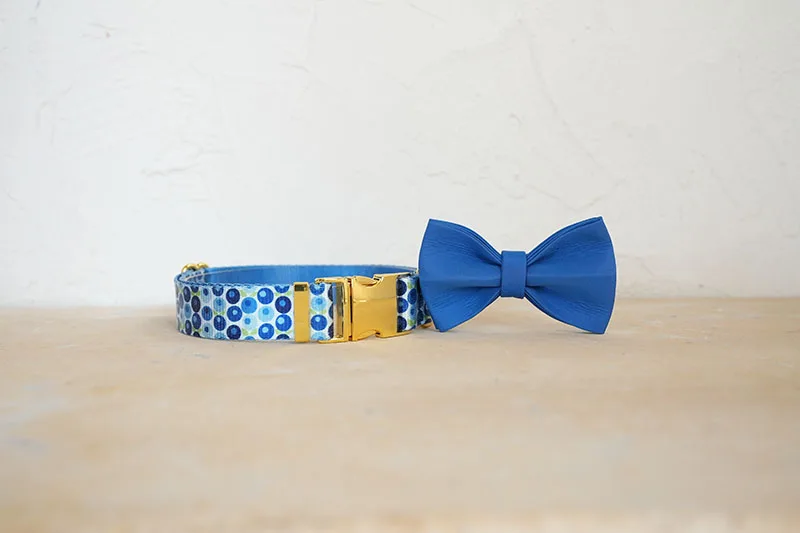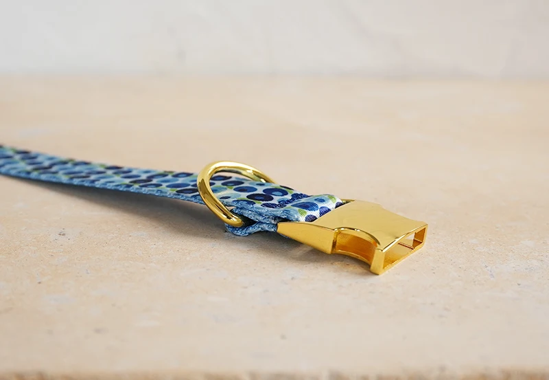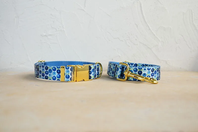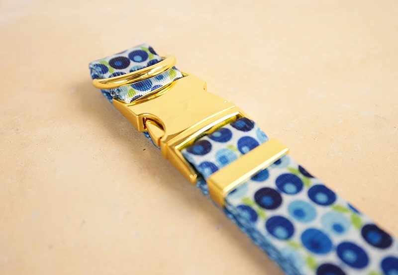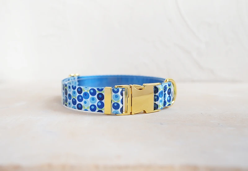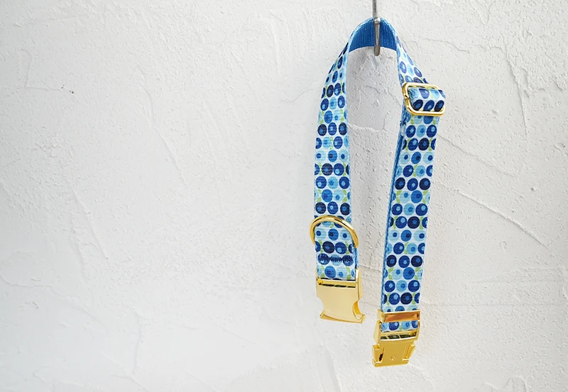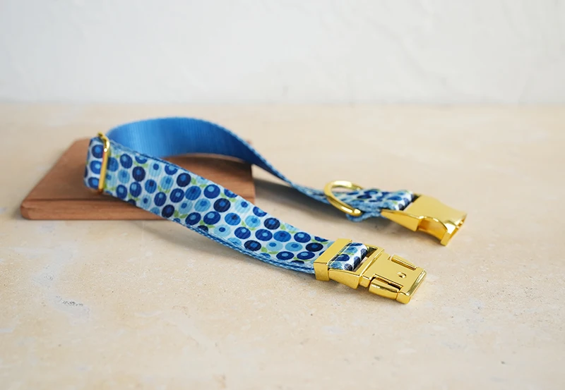 PLATTCO collar de perro de diseño único estampado BLUE BERRY BOX patrón y hebilla dorada de alta calidad 5 tamaño PDC328YG