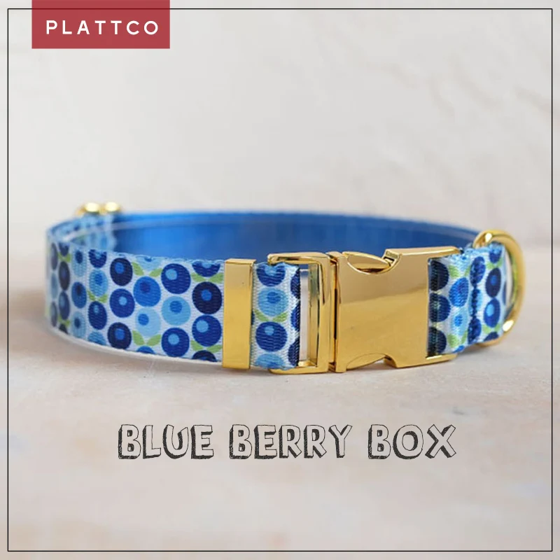 PLATTCO collar de perro de diseño único estampado BLUE BERRY BOX patrón y hebilla dorada de alta calidad 5 tamaño PDC328YG