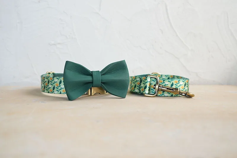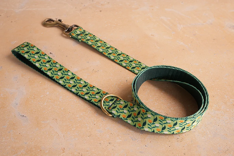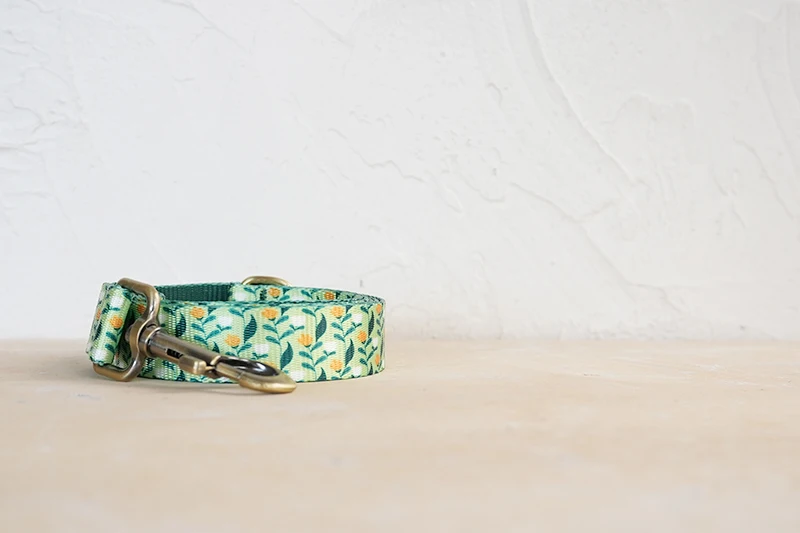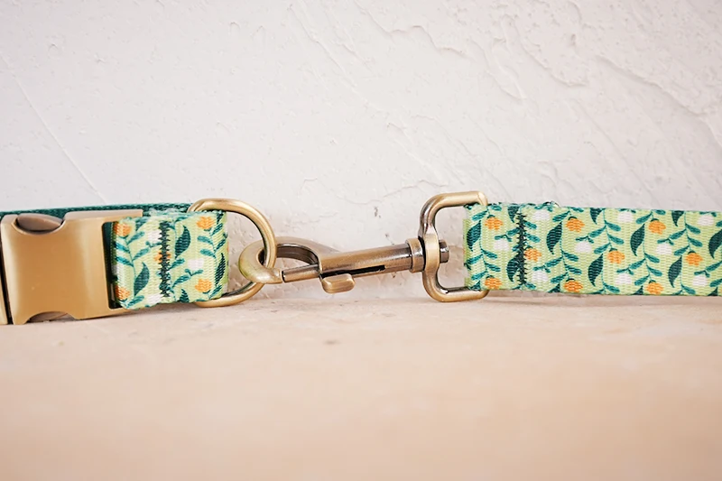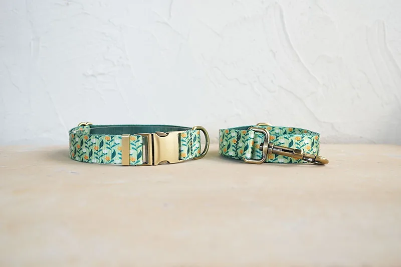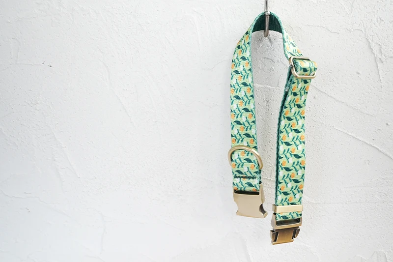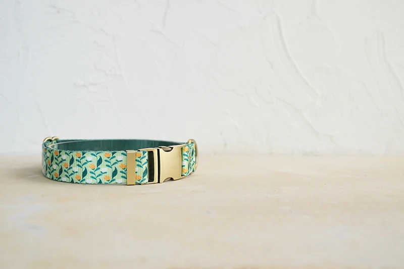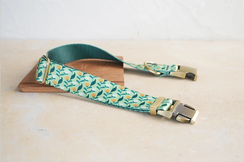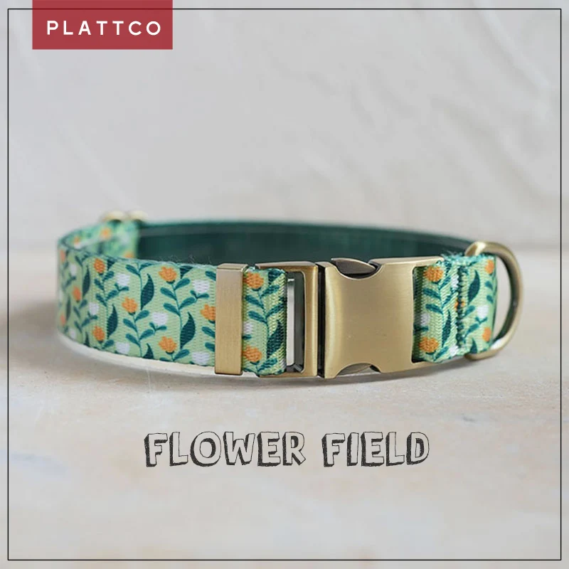 PLATTCO collar de perro de diseño único estampado CAMPO DE FLORES con hebilla de bronce de alta calidad 5 tamaño PDC342Br