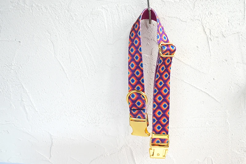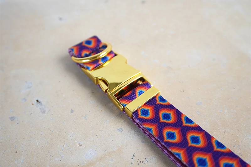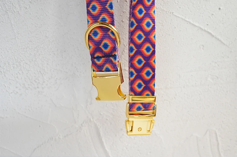 PLATTCO diseño único collar de perro estampado patrón de Gema del arco iris y hebilla de oro de alta calidad 5 tamaño PDC362YG