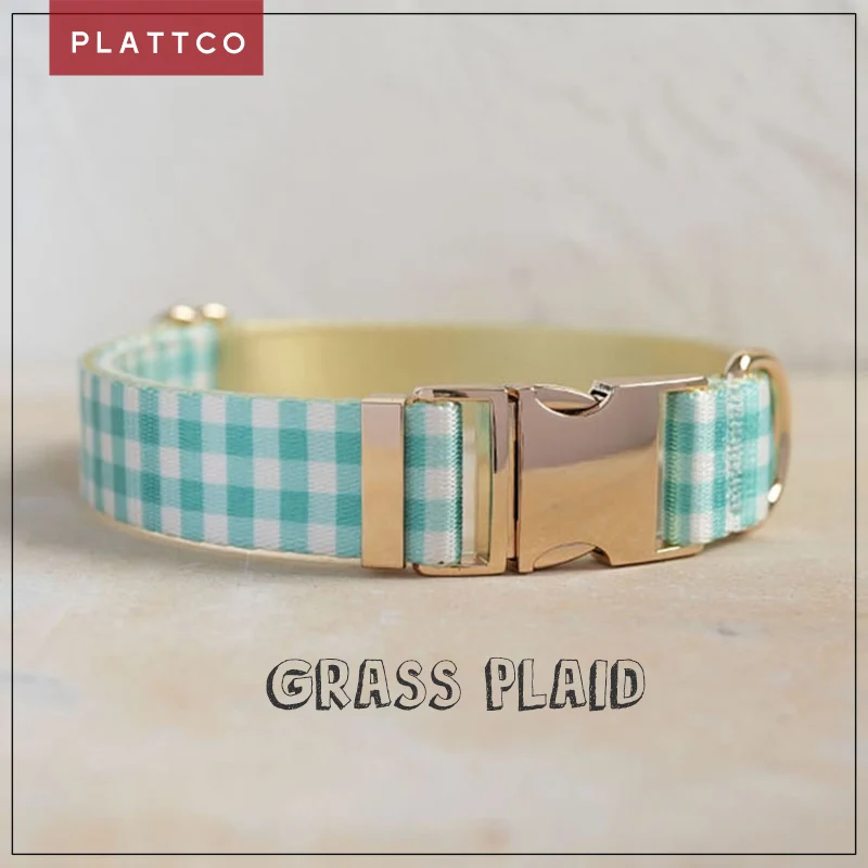 PLATTCO diseño único collar de perro estampado GRASS PLAID patrón con hebilla de aleación de zinc de color claro de alta calidad 5 tamaño PDC306G