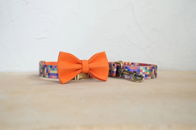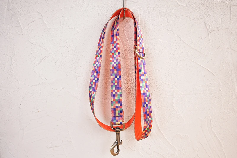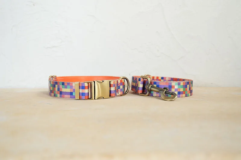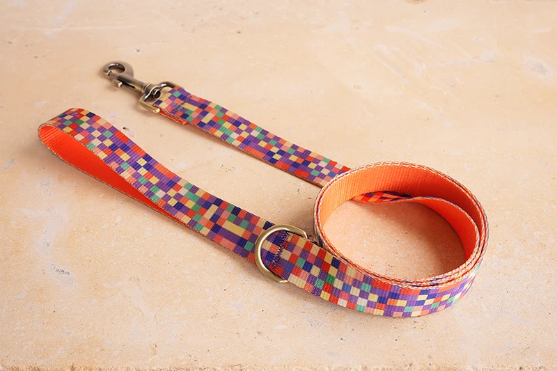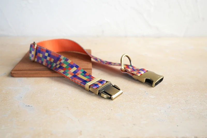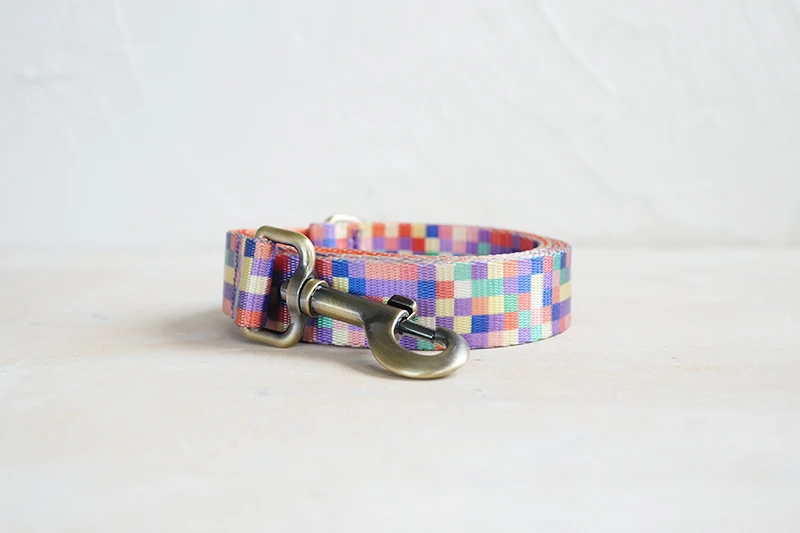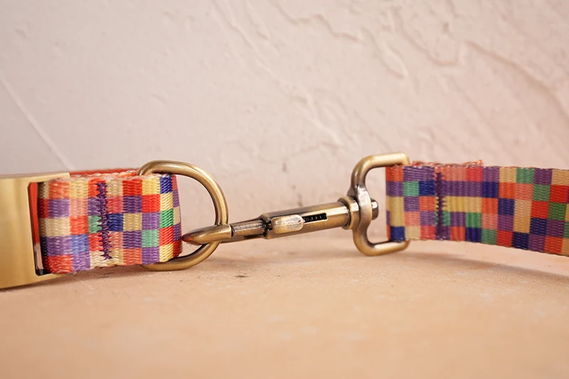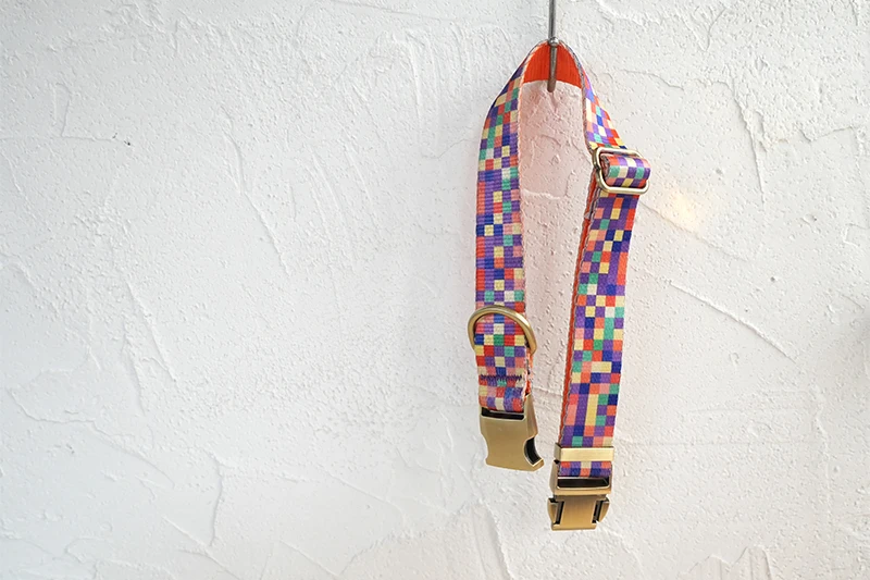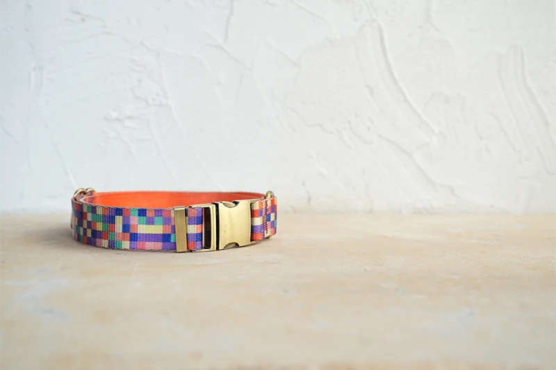 PLATTCO unique design dog collar print NEON PLAID with high-quality bronze buckle size 5 PDC308Br