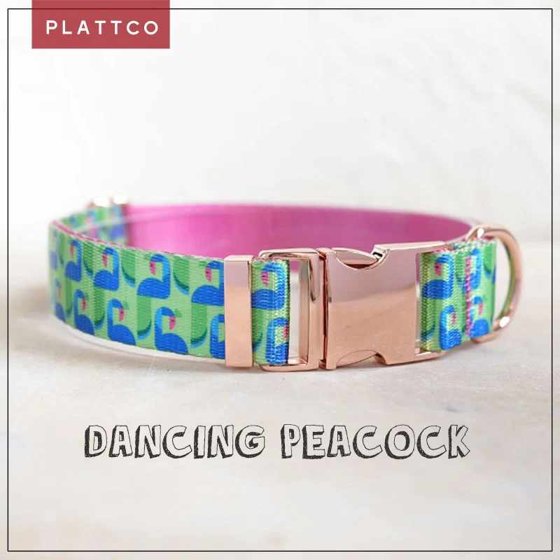 PLATTCO diseño único collar de perro estampado DANCING PEACOCK patrón con hebilla de oro rosa de alta calidad 5 tamaño PDC314RG