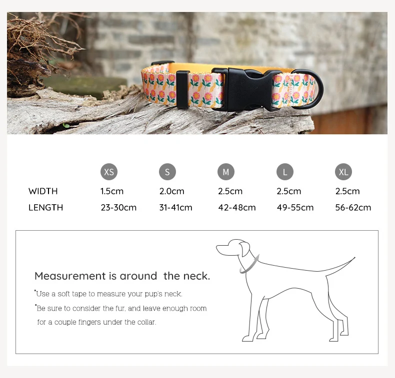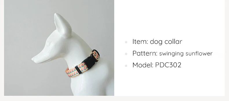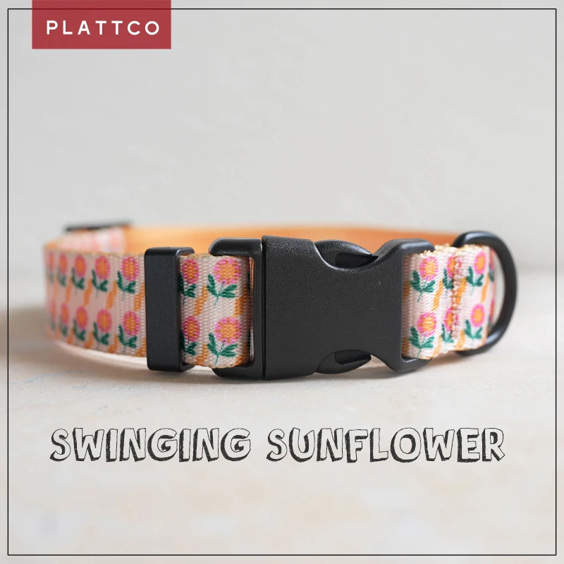 PLATTCO unique design dog collar SWINGING SUNFLOWER pattern high quality plastic buckle plus zinc alloy buckle 5 sizes PDC302