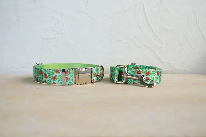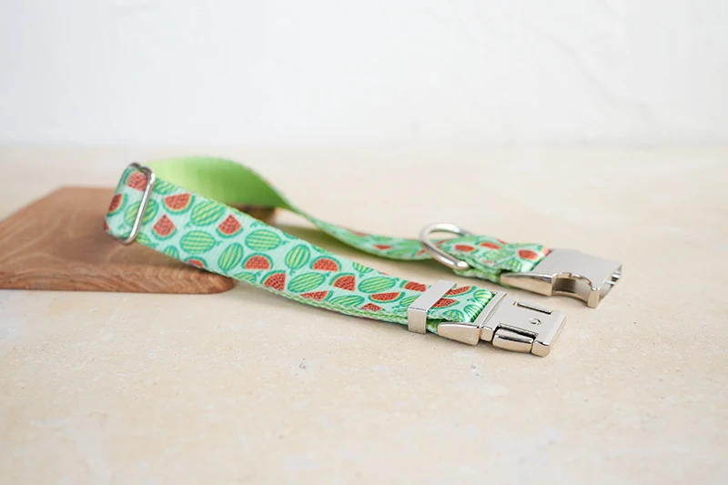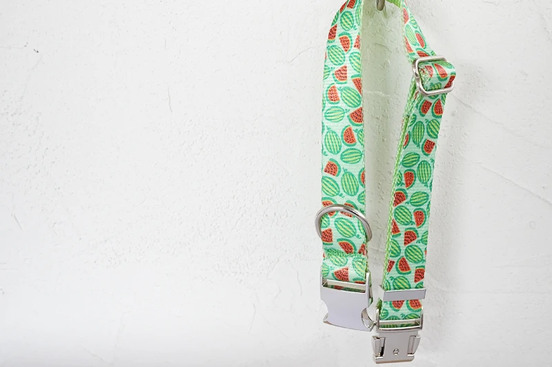 PLATTCO, collar de perro único con estampado de WATERMELON FEAST patrón combinado con hebilla plateada de alta calidad, 5 tamaños PDC325S