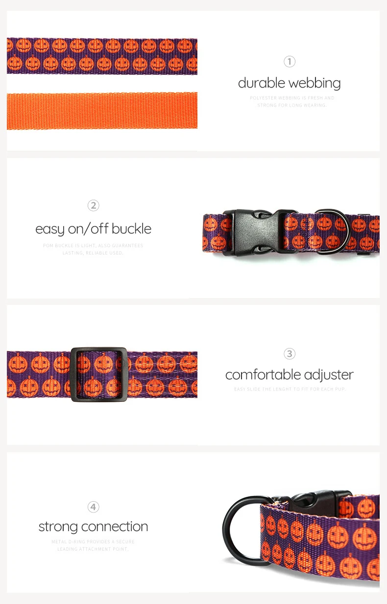PLATTCO Juego de colero extraíble para perros PÚPKIN PÚRPURA Collar ajustable de poliéster para mascotas Pasador para perros pequeños y grandes 5 tamaño PDC337