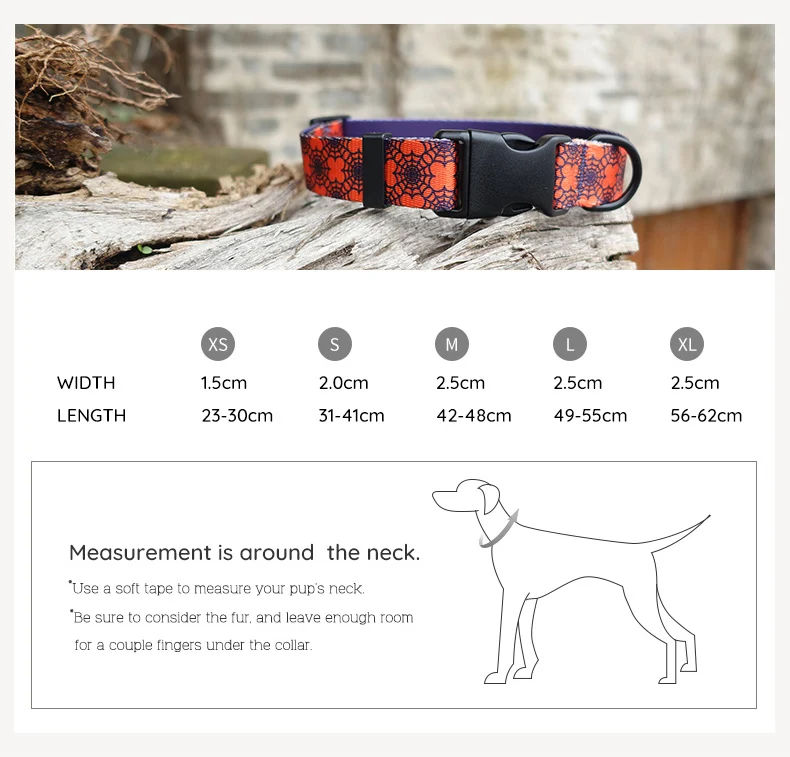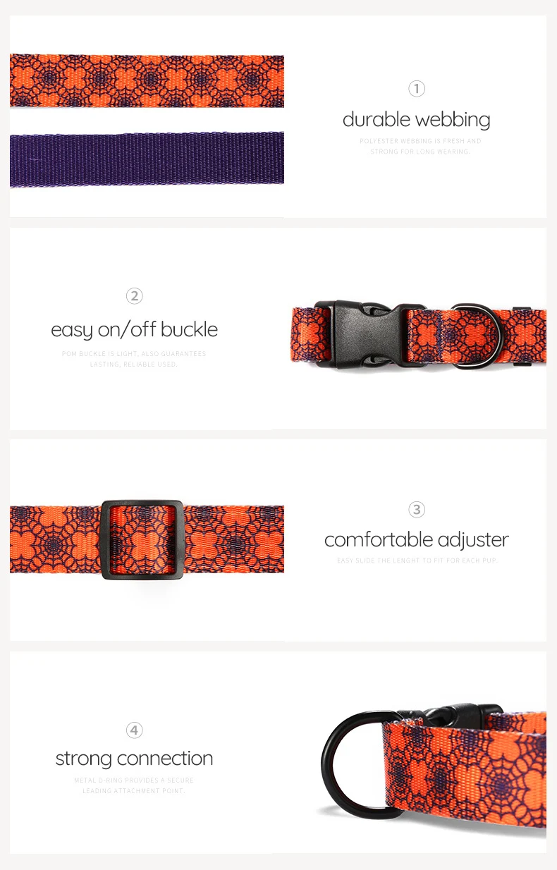 PLATTCO collar de nailon personalizado para perros SPIDER WEB collares para perros pequeños medianos grandes 5 tamaño PDC336