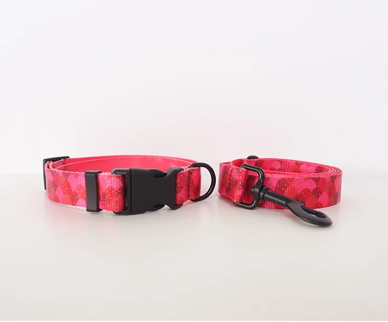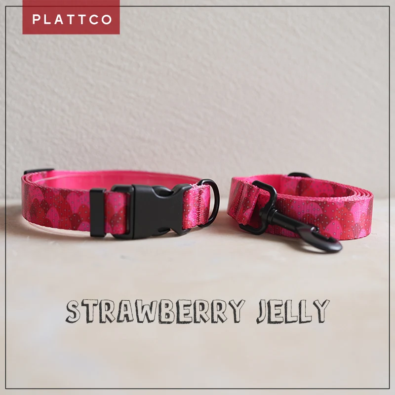 PLATTCO juego de correa de collar para perro STRAWBERRY JELLYd personalizado, collares para cachorros con estampado de nailon para mascotas pequeñas, medianas y grandes, tamaño 5 PDC322