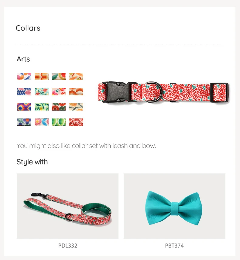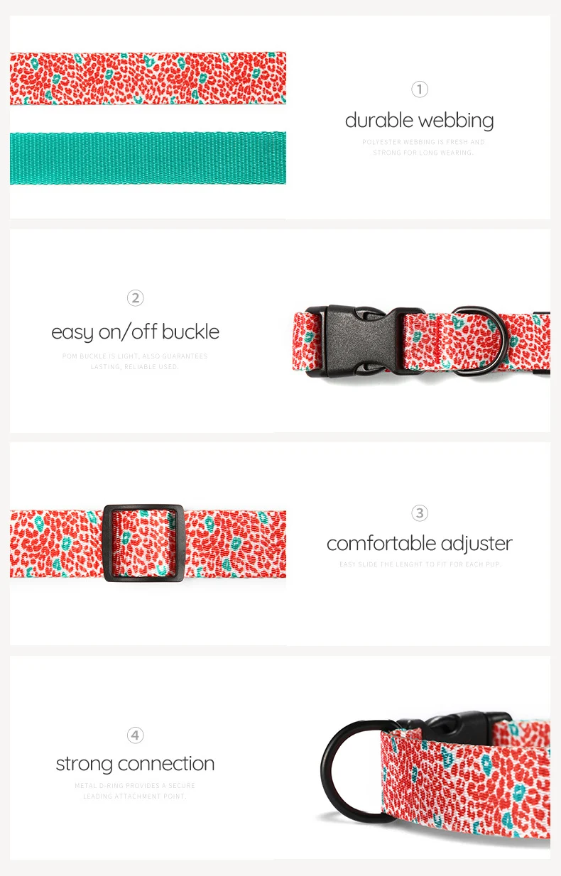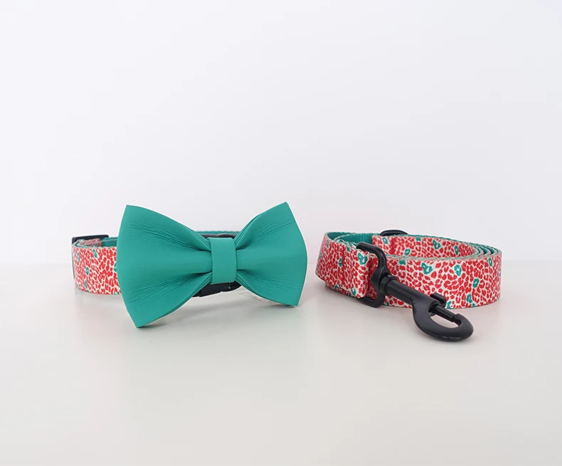 PLATTCO-collares de nailon para mascotas, color rojo personalizado, LEOPARD, ajustable, pajarita prsonalizada, conjunto de correa para perro pequeño, mediano y grande PDC332
