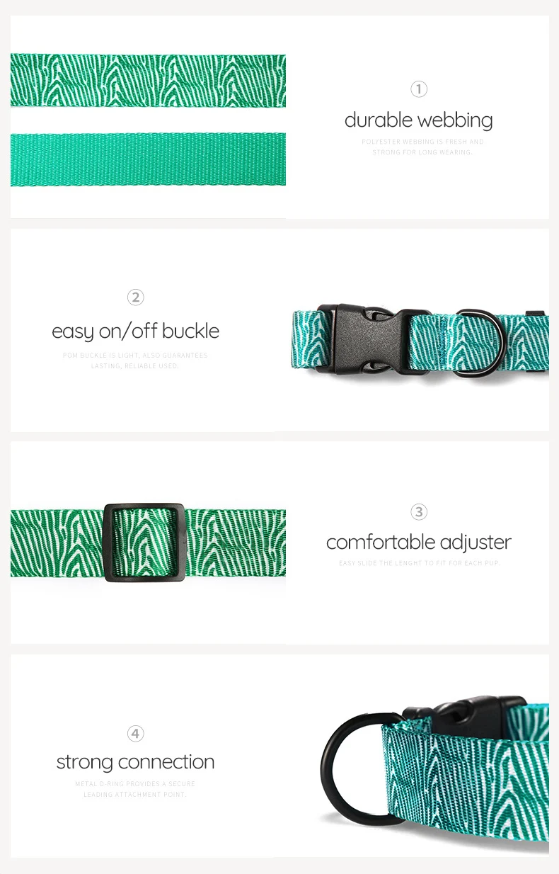PLATTCO collares para mascotas de nailon GREEN ZEBRA personalizados privados ajustables perfectos para pasear todo tipo de perros 5 talla PDC333