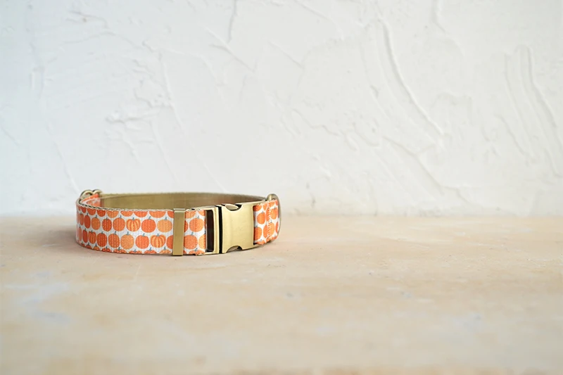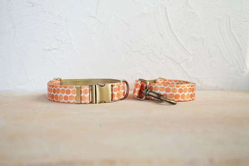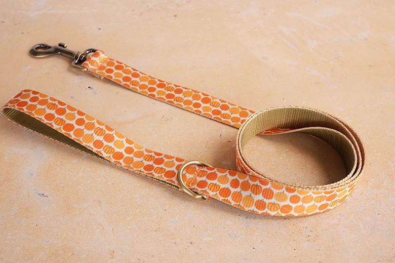 PLATTCO conjunto de perros de diseño único estampado Harvest Pumpkin con hebilla de bronce de alta calidad tamaño 5 PDC367Br&PDL367Br