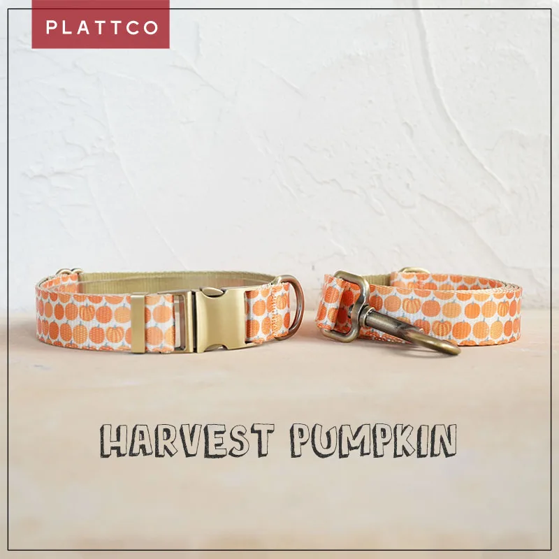 PLATTCO conjunto de perros de diseño único estampado Harvest Pumpkin con hebilla de bronce de alta calidad tamaño 5 PDC367Br&PDL367Br