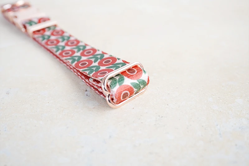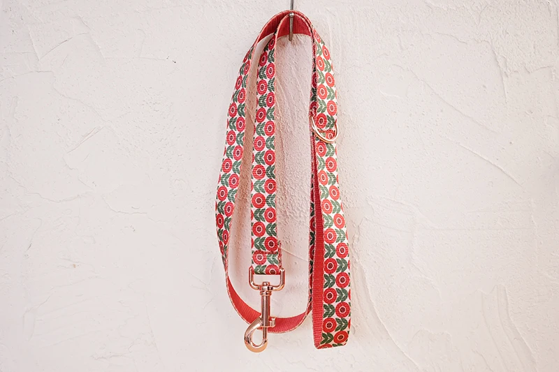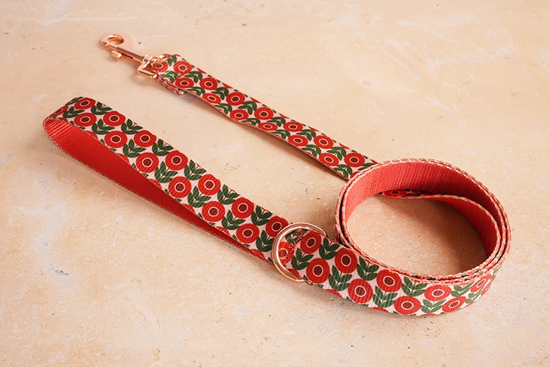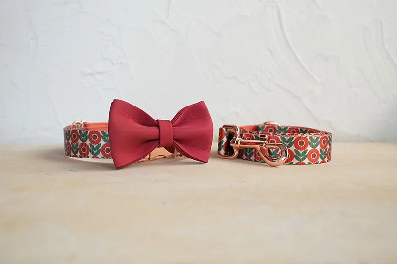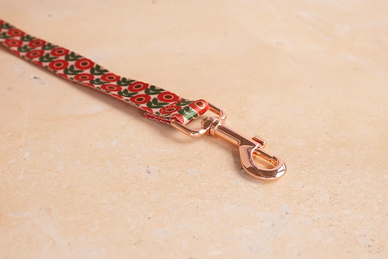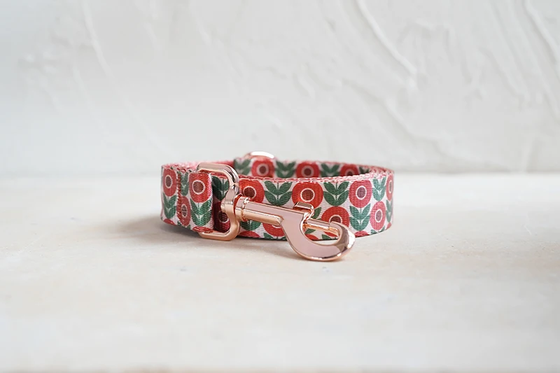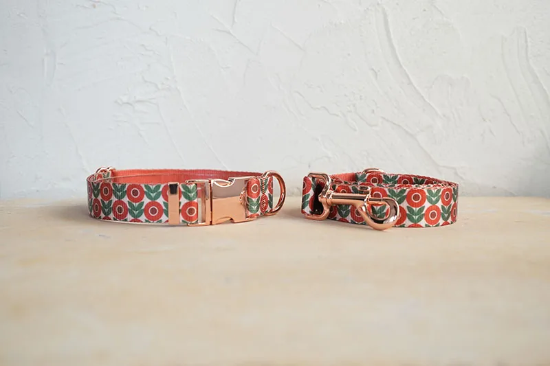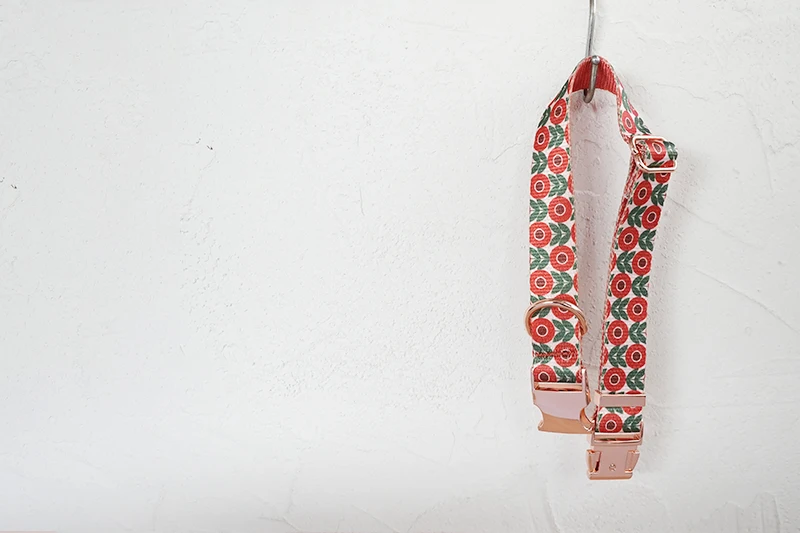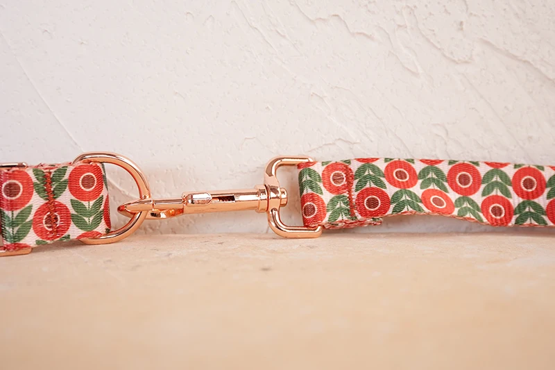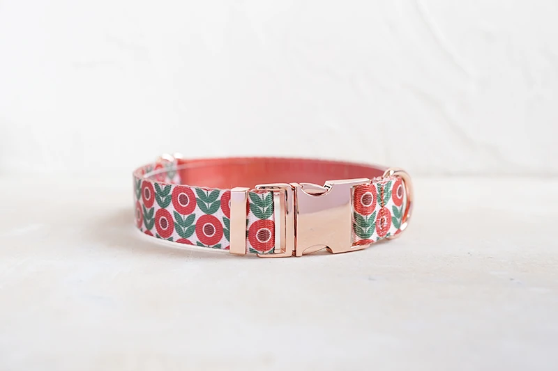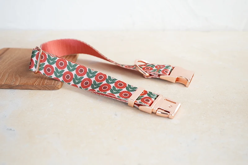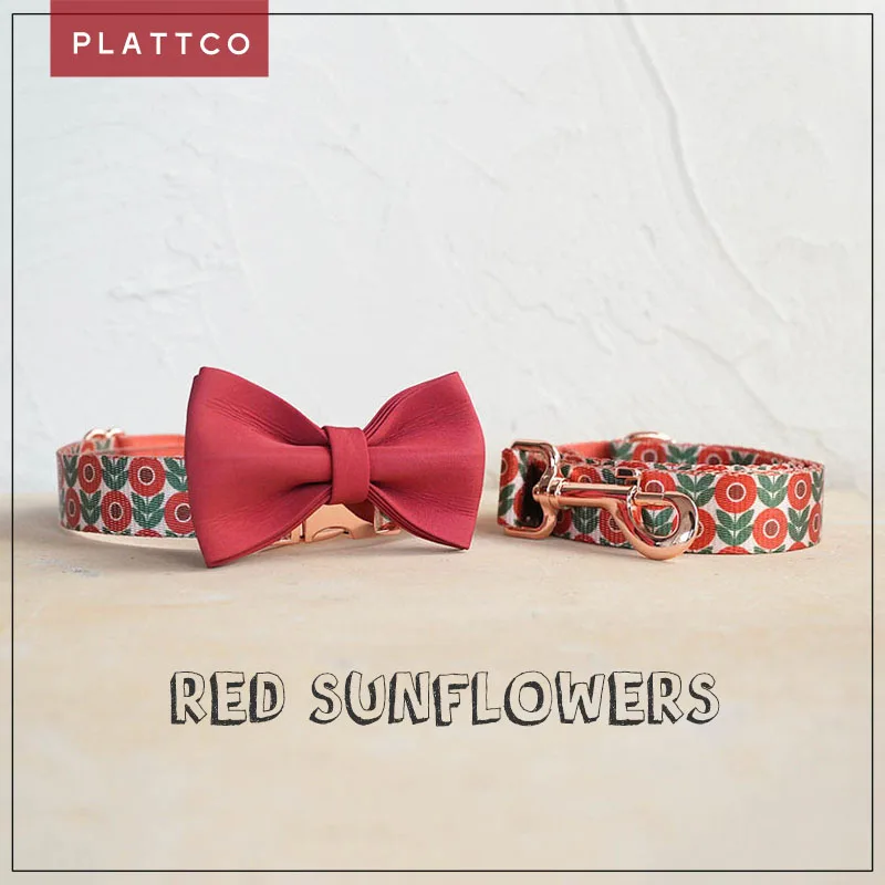 PLATTCO Juego de perros de diseño único con estampado de girasoles rojos con hebilla de oro rosa de alta calidad 5 tamaños PDC349RG&PDL349RG&PBT086