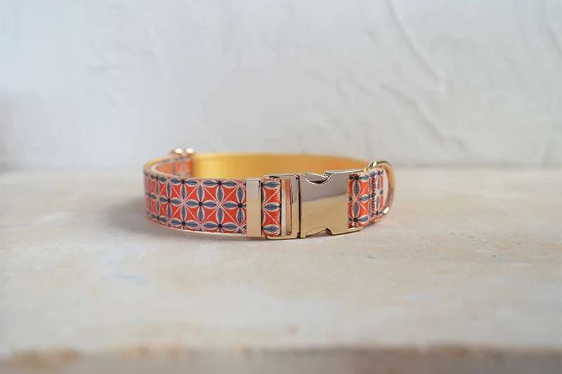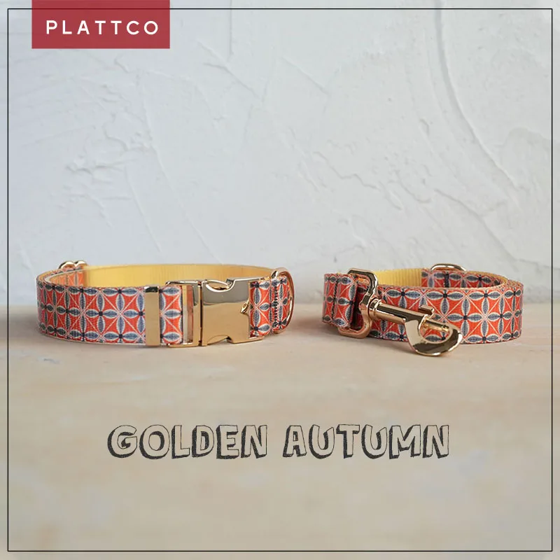 PLATTCO diseño único perro y estampado patrón de otoño dorado con hebilla de aleación de zinc de color claro de alta calidad 5 tamaños PDC304G y PDL304G