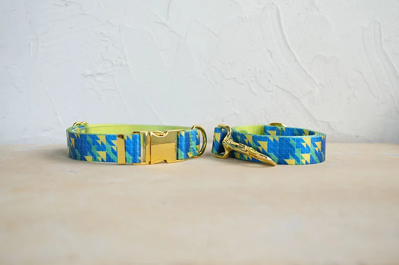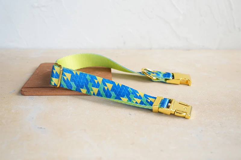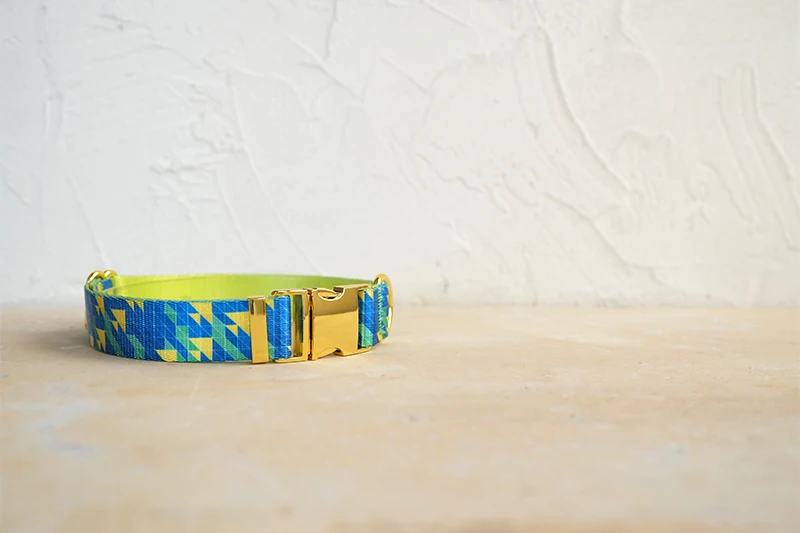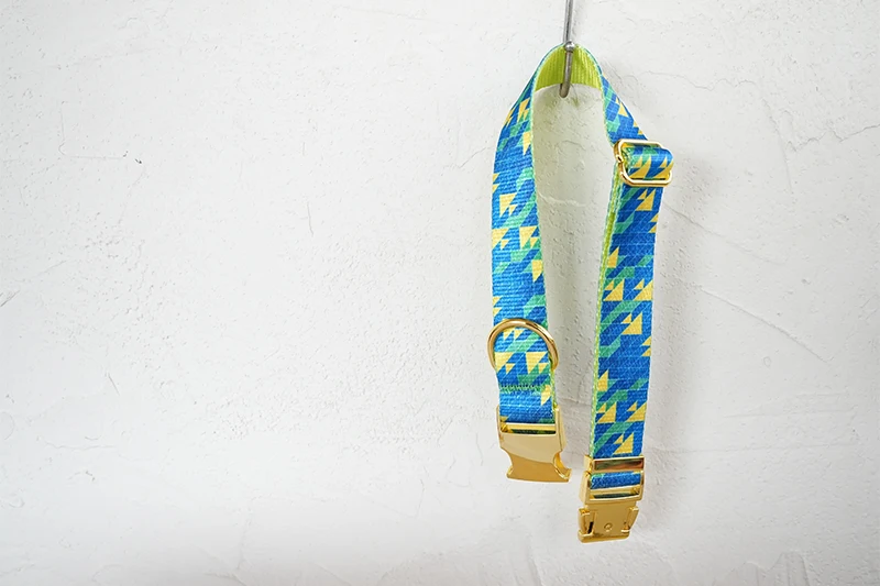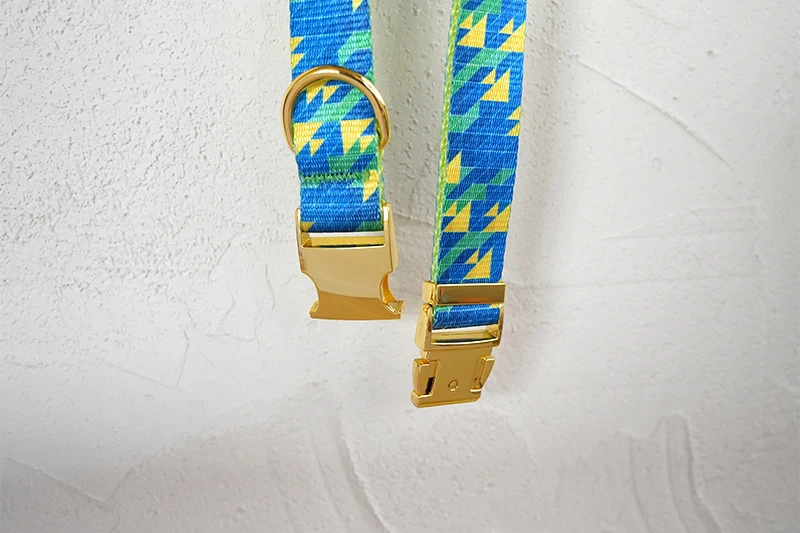 PLATTCO unique design dog collar print SUNSET SEA pattern and high-quality gold buckle size 5 PDC309YG&PDL309YG&PBT365