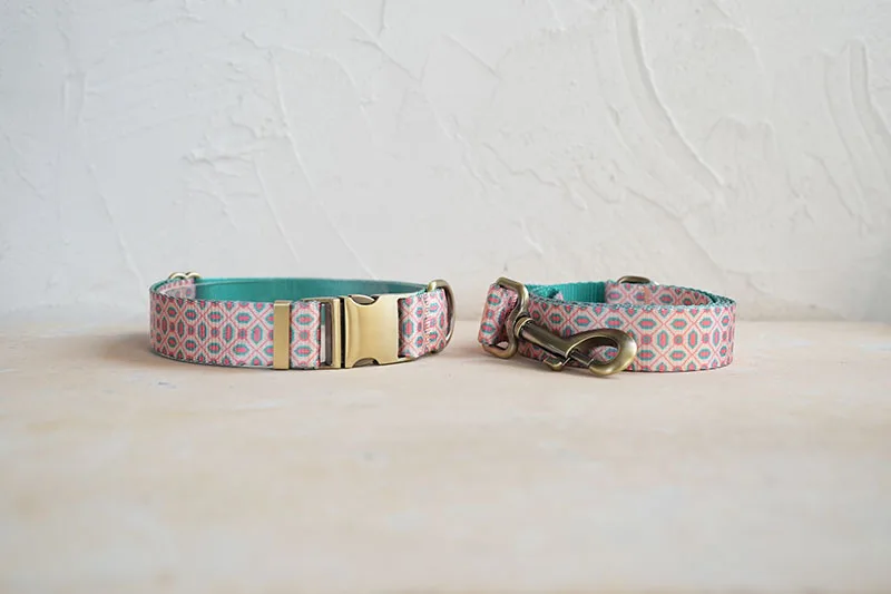 PLATTCO Juego de perros de diseño único con estampado Tan Glaze con hebilla de bronce de alta calidad tamaño 5 PDC370Br&PDL370Br&PBT050