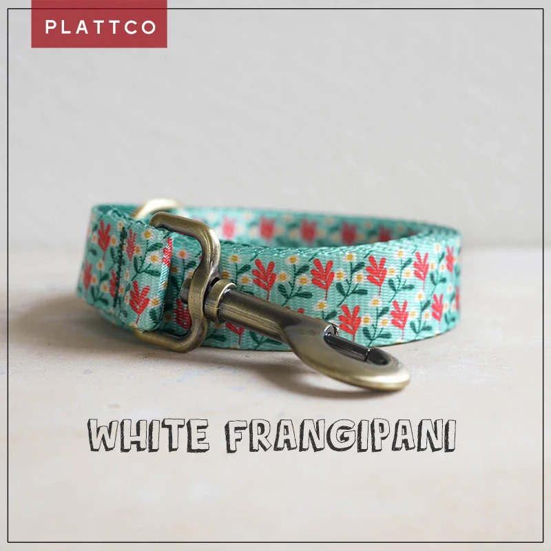 PLATTCO Correa para el cuello para mascotas grabada de diseño propio Correa para cachorros personalizada FRANGIPANI PDL343 BLANCO