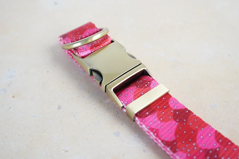 Correa de perro de diseño único PLATTCO con estampado de FRESA JALEA con hebilla de bronce de alta calidad tamaño 5 PDL322Br
