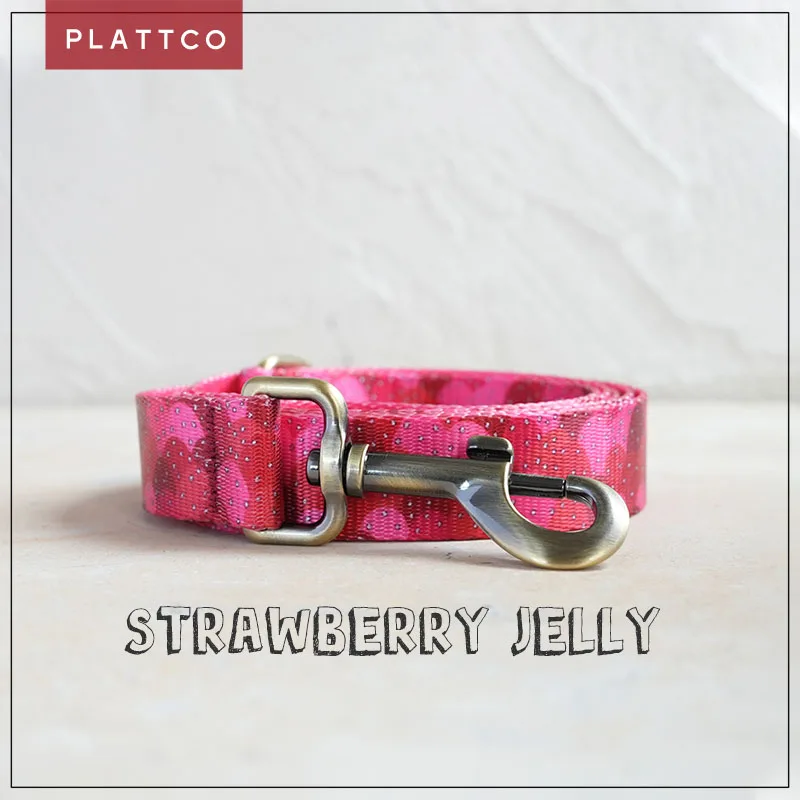 Correa de perro de diseño único PLATTCO con estampado de FRESA JALEA con hebilla de bronce de alta calidad tamaño 5 PDL322Br