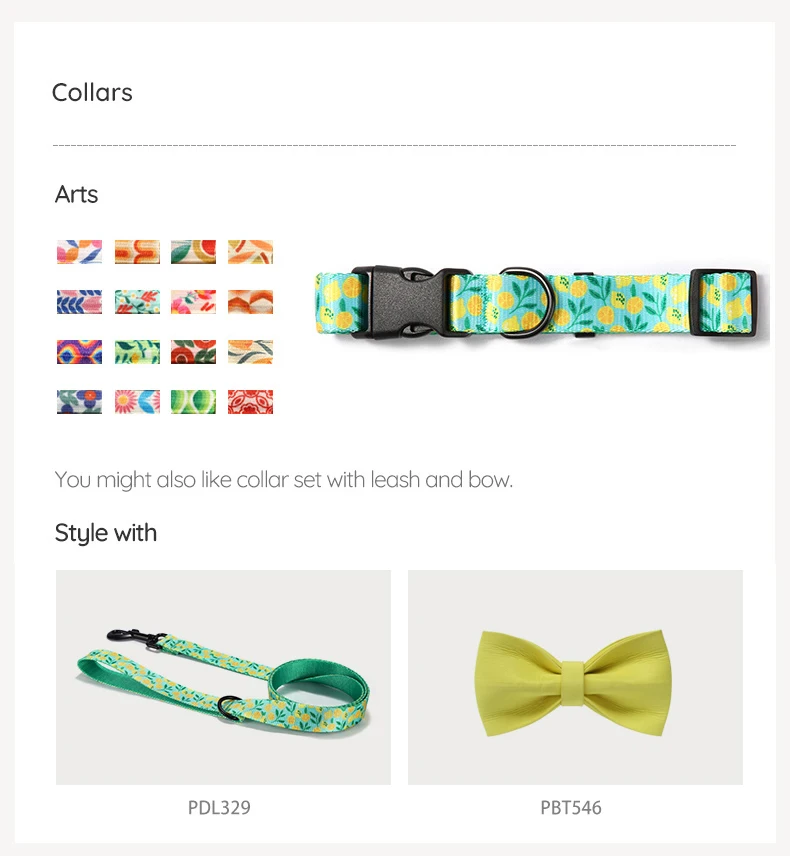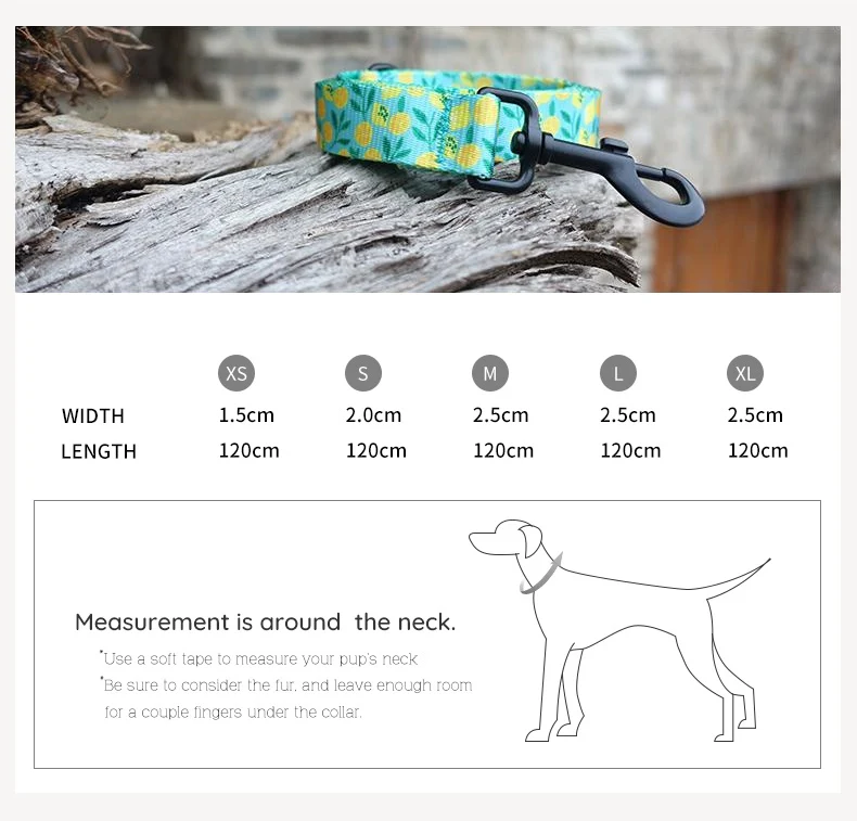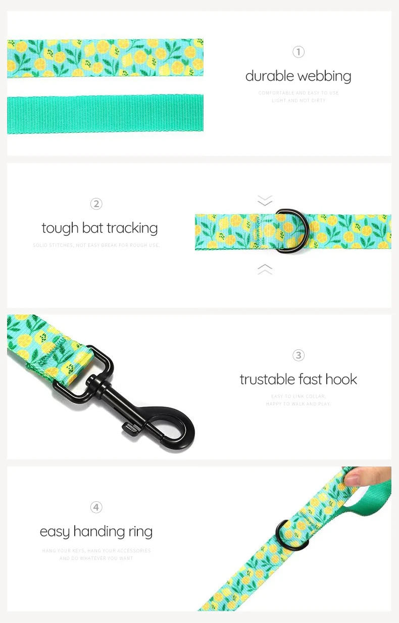 PLATTCO LEMON TEASE con impresión en color personalizada, correa para perro de nailon de imitación suave, duradera para perros pequeños, medianos y grandes, 5 tamaños PDL329