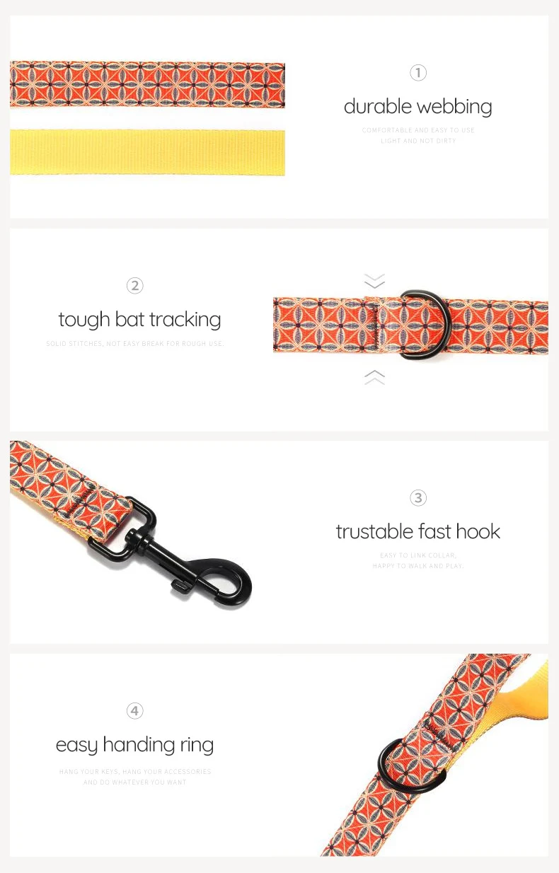 PLATTCO Correa para perro GOLDEN AUTUMN con estampado de nailon de imitación, perro pequeño, mediano y grande, correa para perro corriendo, correa para perro de seguridad para caminar PDL304