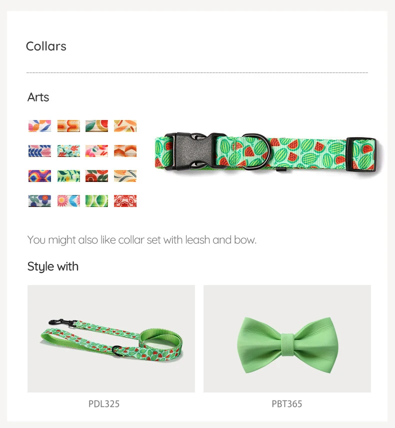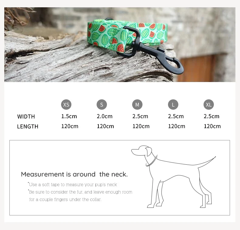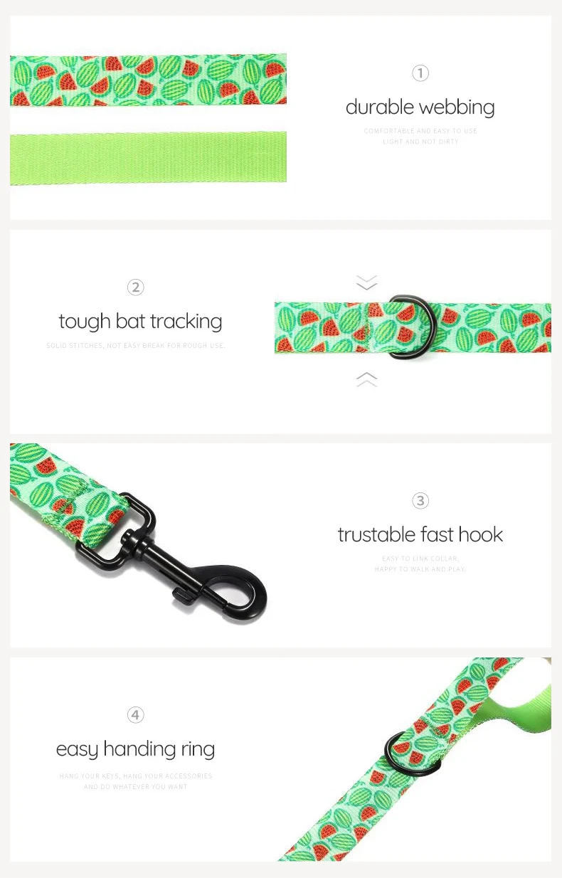 PLATTCO Correa personalizada para perros WATERMELON FEAST, correa para cachorros con estampado de nailon de imitación para perros, mediana y grande, 5 tamaños PDL325
