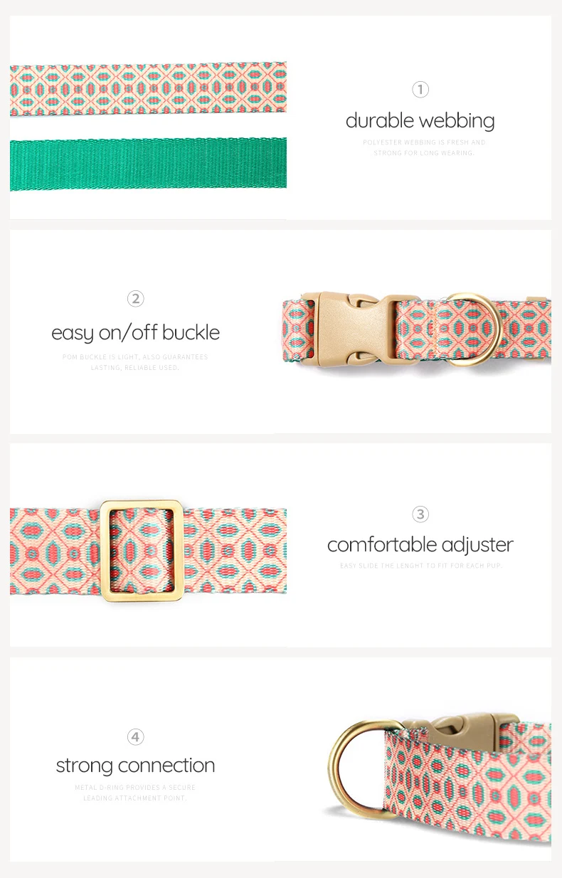 PLATTCO, fábrica al por mayor, nueva correa con estampado de poliéster, correa para mascotas, correa para perros, bronceado esmaltado PDC370
