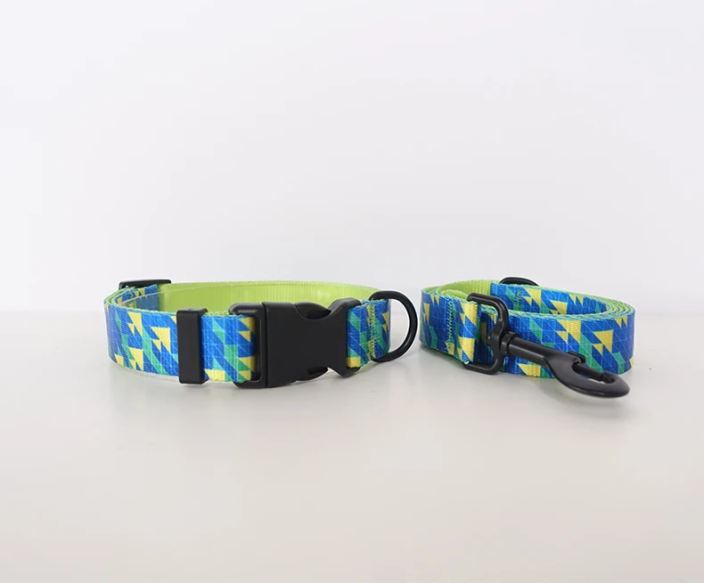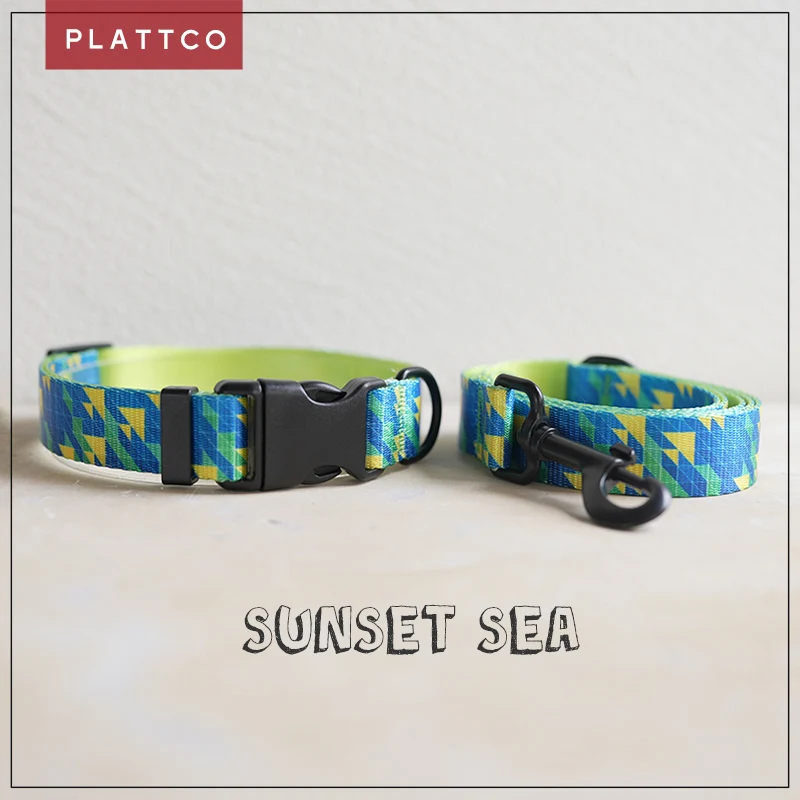 PLATTCO Juego de correa y collar de perro con cinta estampada de diseño único SUNSET MAR con hebilla de alta calidad 5 tamaños PDC309 PDC309