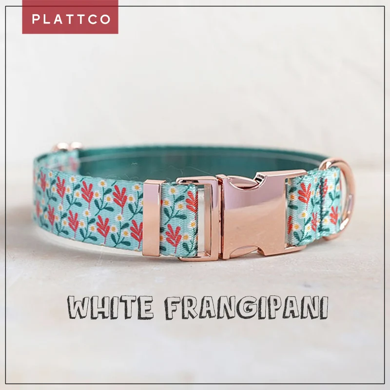 PLATTCO diseño único collar para perro estampado patrón WHITE FRANGIPANI con hebilla de oro rosa de alta calidad tamaño 5 PDC343RG