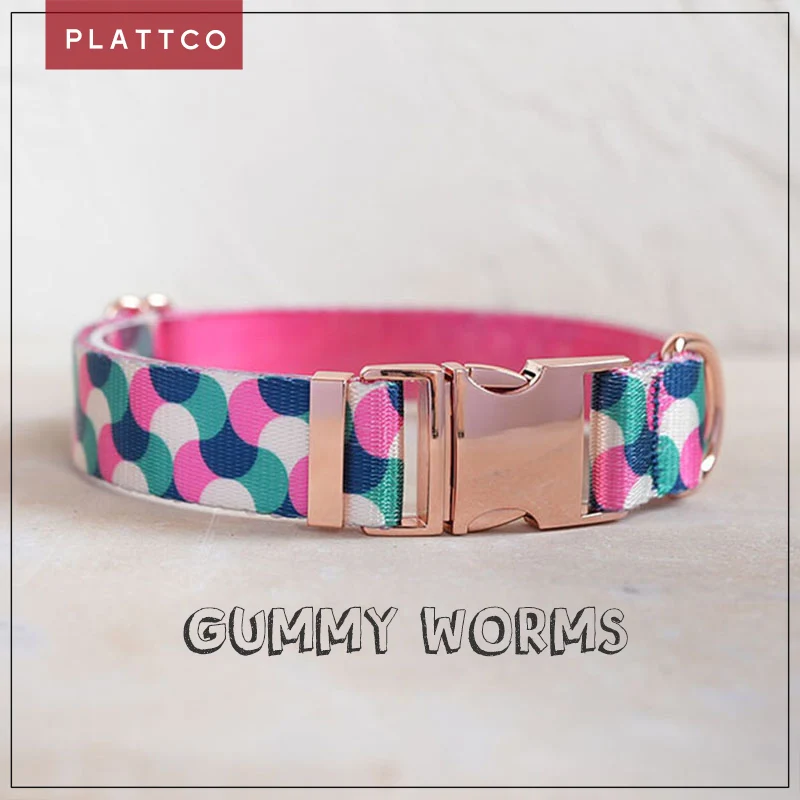PLATTCO diseño único collar para perro estampado GUMMY WORMS patrón con hebilla de oro rosa de alta calidad 5 tamaño PDC317RG