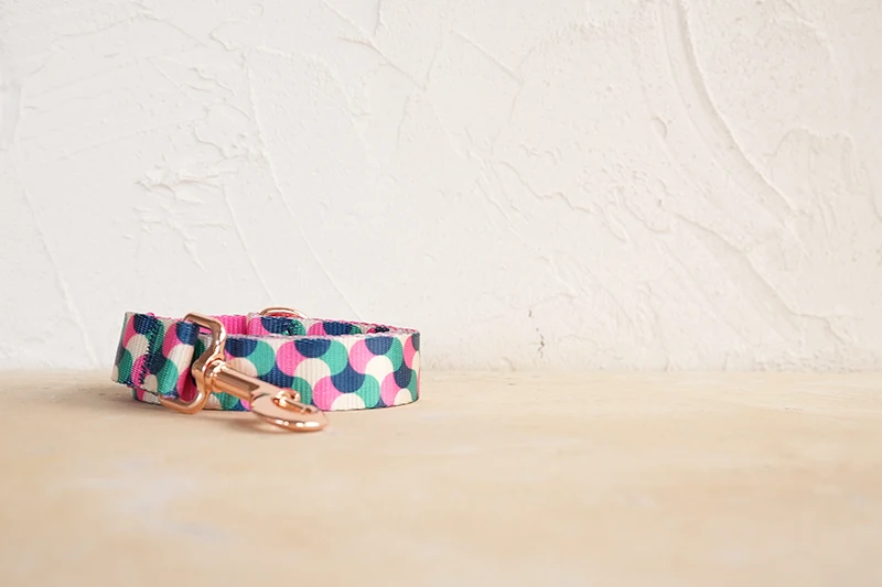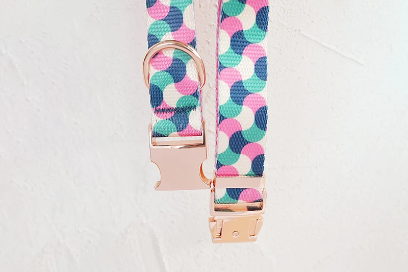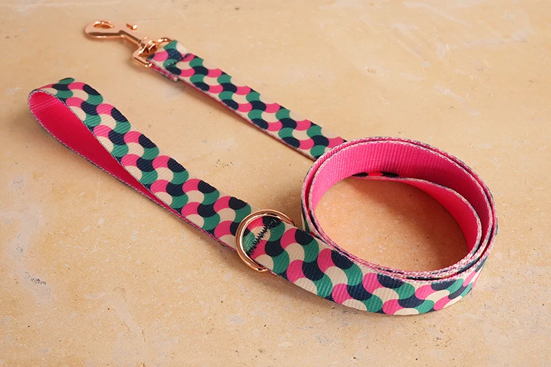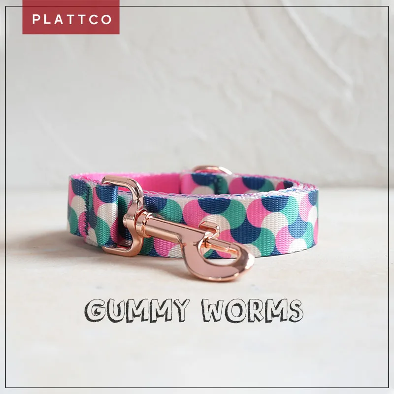 PLATTCO diseño único estampado de correa para perro patrón GUMMY WORMS con hebilla de oro rosa de alta calidad tamaño 5 PDL317RG