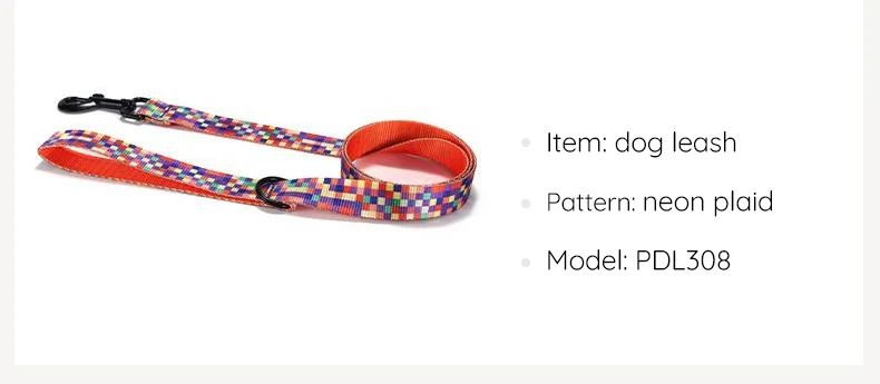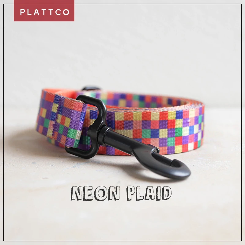 PLATTCO impresión clásica NEON PLAID cuerda para caminar para perros pequeños y medianos de tamaño grande mascota gato perro imitación cuerda para perros de nailon PDL308