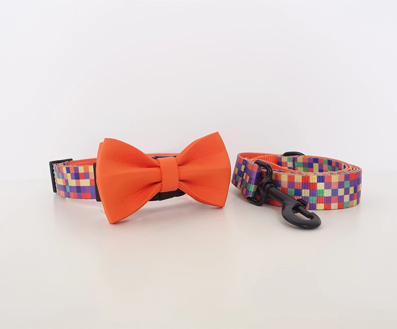 PLATTCO juego de correa y collar con pajarita para perro NEON PLAID para perros grandes, medianos y pequeños con hebilla adecuada de plástico y aleación de zinc 5 tamaños PDC308