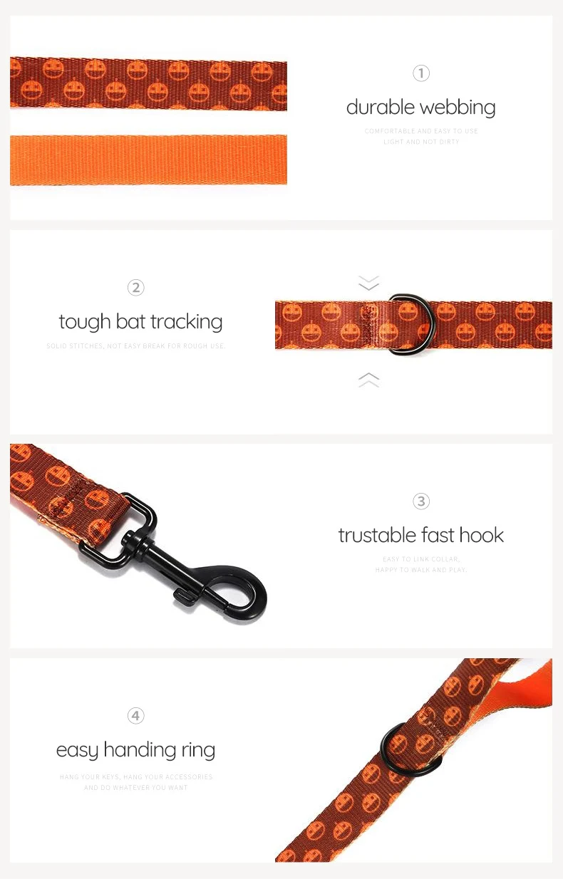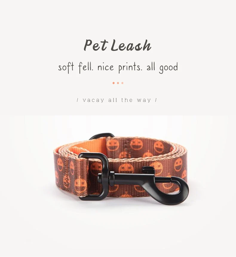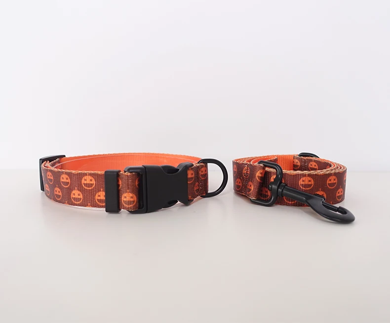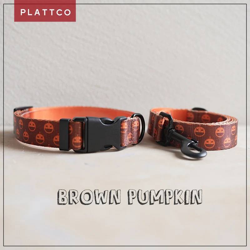 Juego de correa para collar de perro con estampado de nailon PLATTCO, collar ajustable para perro BROWNE PUMKIN para caminar todo tipo de productos para perros, tamaño 5 PDC338