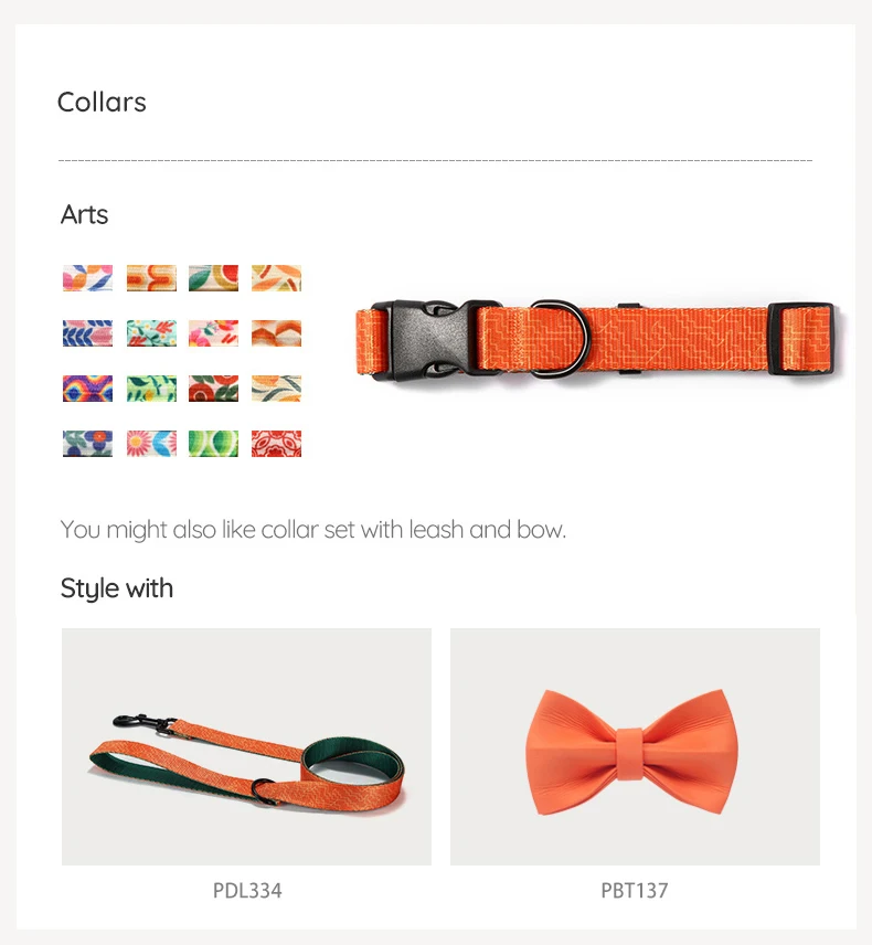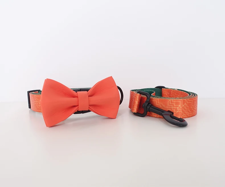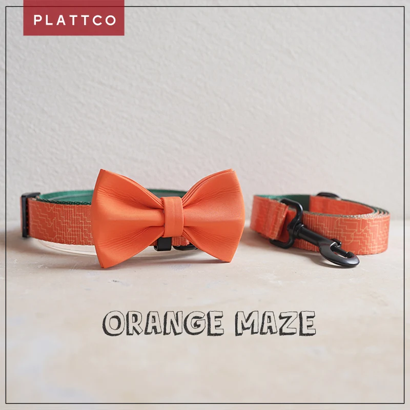 PLATTCO juego de correa y collar con pajarita estampada de nailon ORANGE MAZE ajustable para caminar todo tipo de productos para perros 5 tallas PDC334