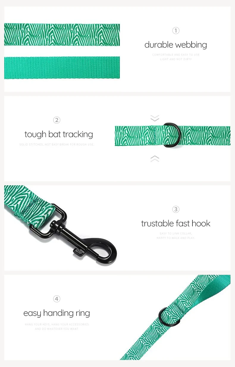 PLATTCO personalizado privado GREEN ZEBRA collar de nailon para perros conjunto de correa ajustable perfecto para pasear todo tipo de perros 5 talla PDC333