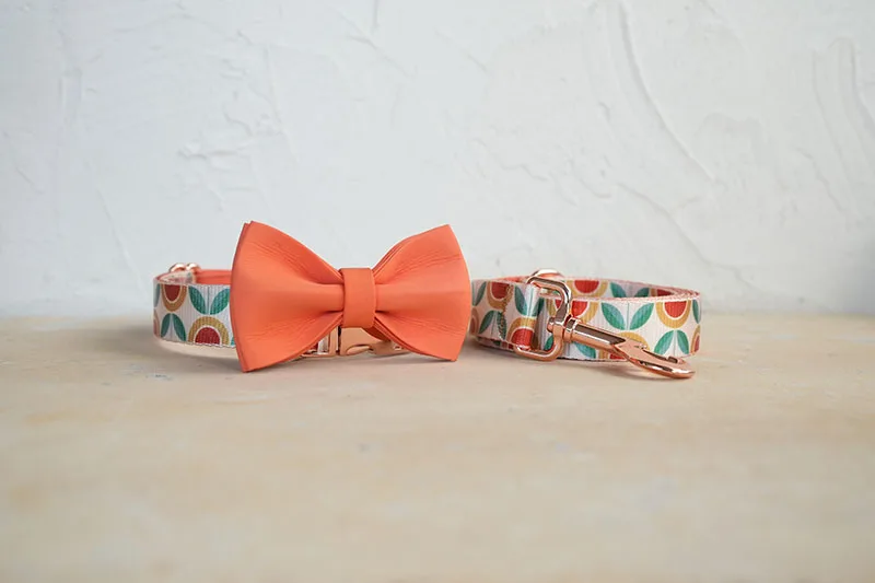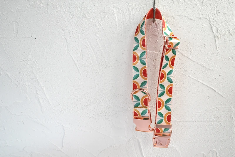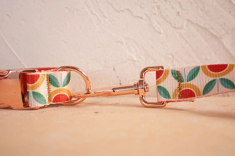 PLATTCO unique design dog collar print Flower Tea pattern with high-quality rose gold buckle 5 size PDC351RG